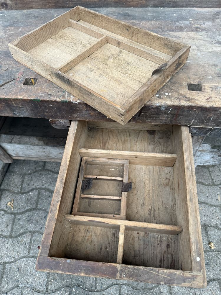 Besonderheiten: Schraubstock, Bankhakenlöcher, Schublade mit Einteilung, massive Bauweise
