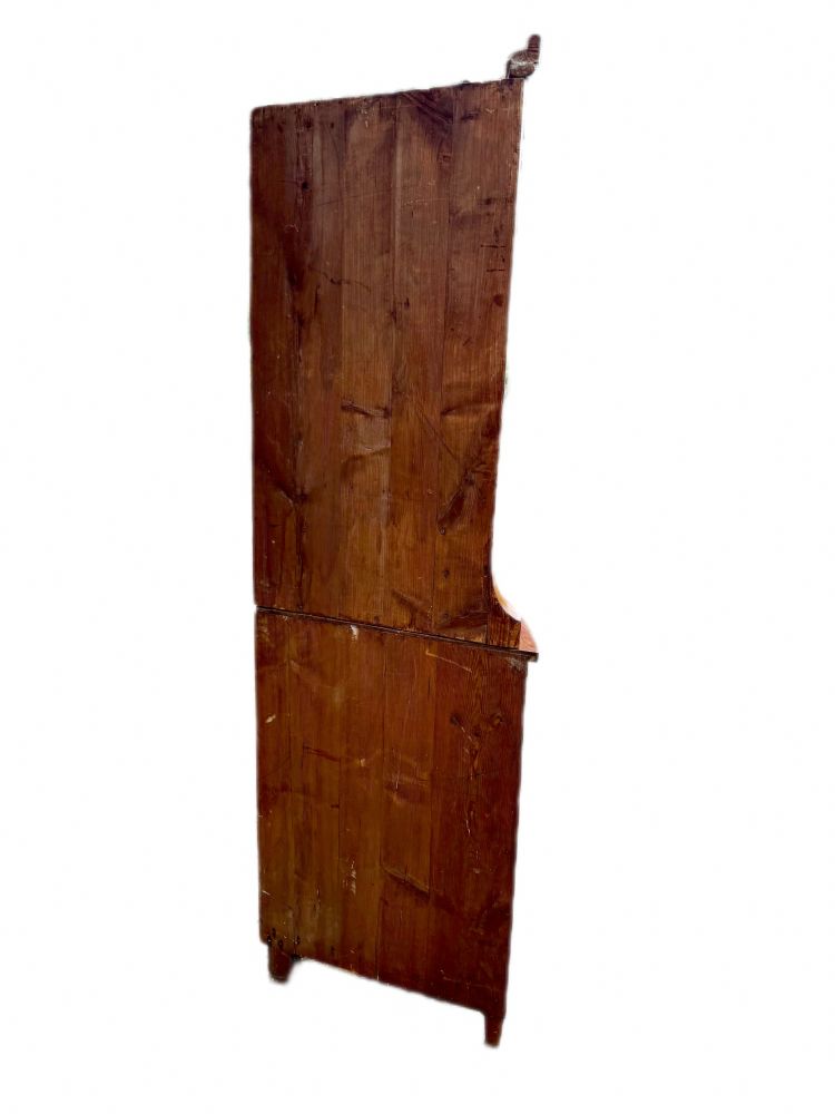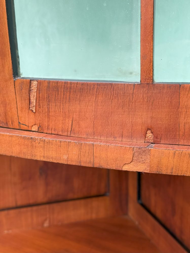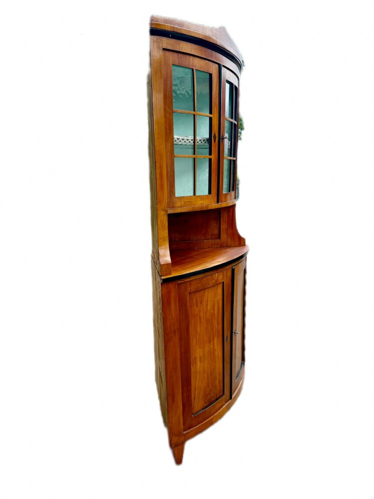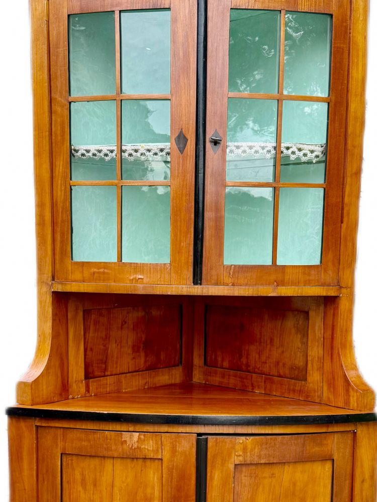 Produktinformationen "Antiker Biedermeier Eckschrank – Kirschbaumfurnier auf Weichholz, unrestauriert mit Charakter"