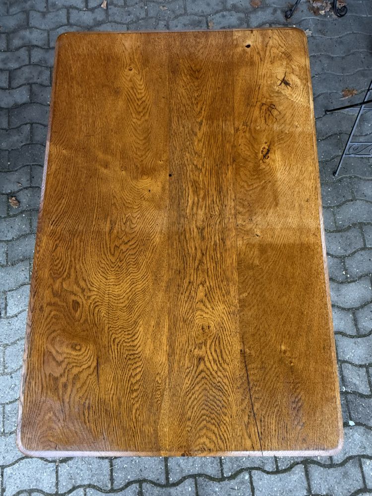 Der Tisch befindet sich im unrestaurierten Zustand, ist jedoch so gut erhalten und stabil, dass er problemlos direkt genutzt werden kann. Kleine altersbedingte Spuren erzählen von seinem langen Leben und machen seinen Charakter aus.