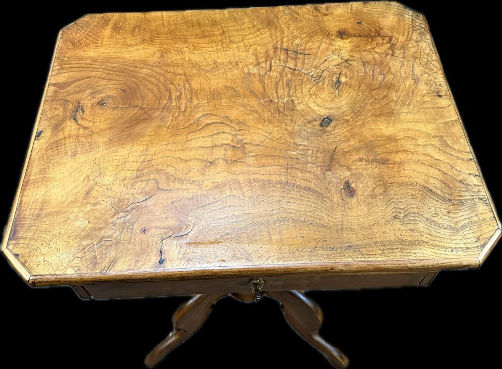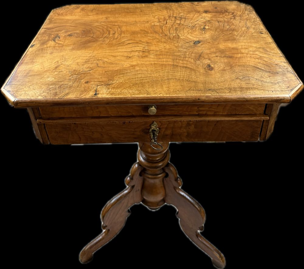 Produktinformationen "Antiker Nähtisch „Handarbeit“ um 1860 – Eschenholz mit Säulenfuß & Schubladen"