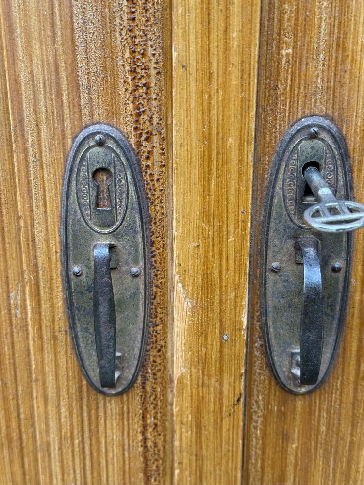 Der Schrank befindet sich in einem guten Originalzustand – auf Wunsch kann er fachgerecht restauriert oder farblich verändert werden.