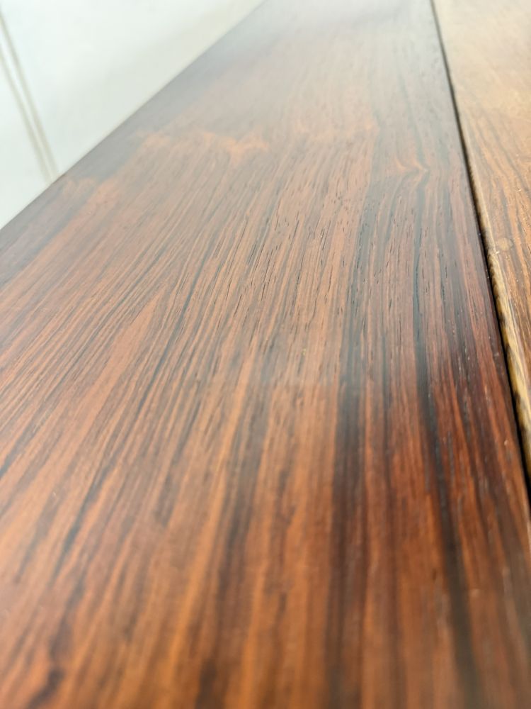 Dieser außergewöhnliche dänische Mid-Century-Modern Tisch aus Palisander wurde um 1964 nach einem Entwurf von Niels Bach gefertigt und vereint ikonisches skandinavisches Design mit durchdachter Funktionalität. Ein echtes Sammlerstück für Liebhaber authentischer Designklassiker – und zugleich ein perfektes Möbel für Menschen, die selbst restaurieren möchten.