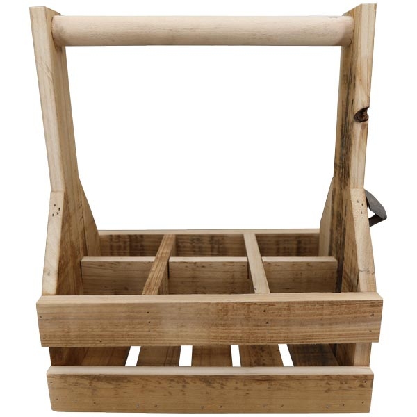 Gefertigt aus naturbelassenem Holz und robustem Metall im Antiquité-Stil, bietet die Kiste Platz für 6 Flaschen à 0,33 l.