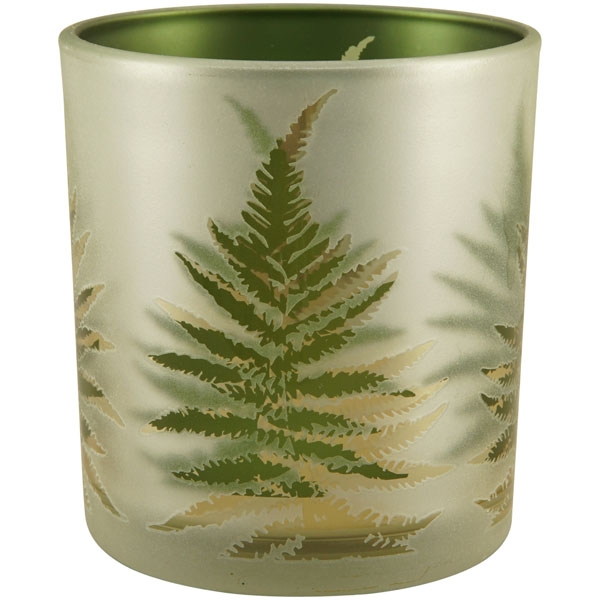 Produktinformationen "Windlicht mit Blattmuster aus Glas /innen grün schimmernd / 8 cm hoch"