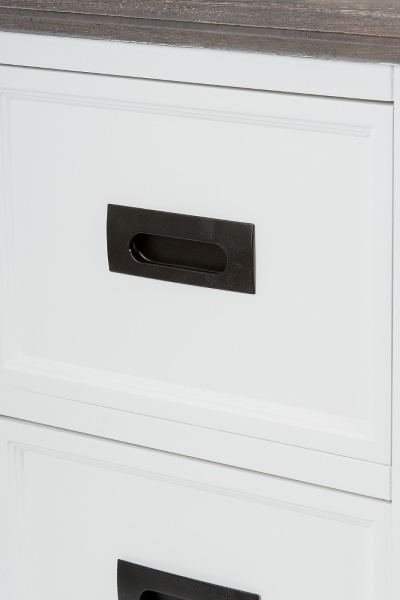 Die Kommode hat dreif Schubladen mit Eingriffen, in denen Sie eine Menge verstauen können.