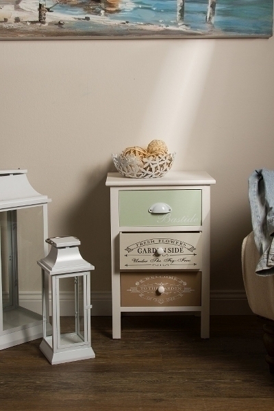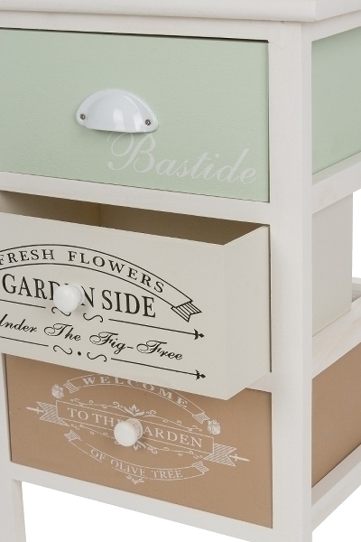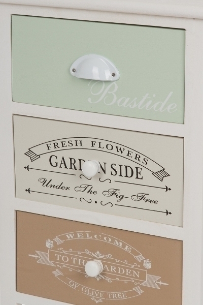 Die Schubladen haben ein hübsches Design in Pastellfarben und sind mit dekorativen Drucken versehen.