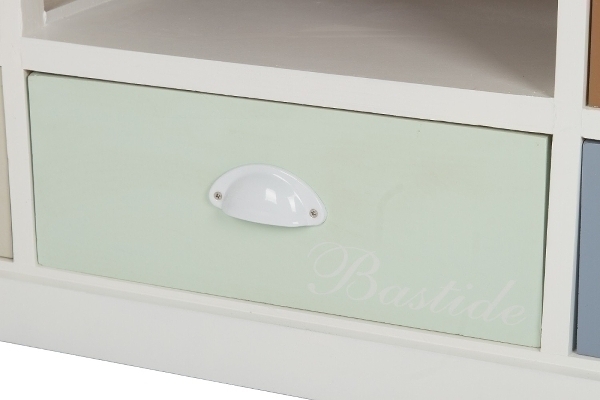 Die verschiedenen sanften Farben der Schubladen harmonieren mit dem weißen Korpus.