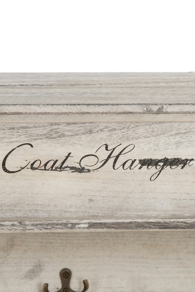 Die Wandablage hat einen hübschen Schriftzug und 3 praktische Doppelhaken.