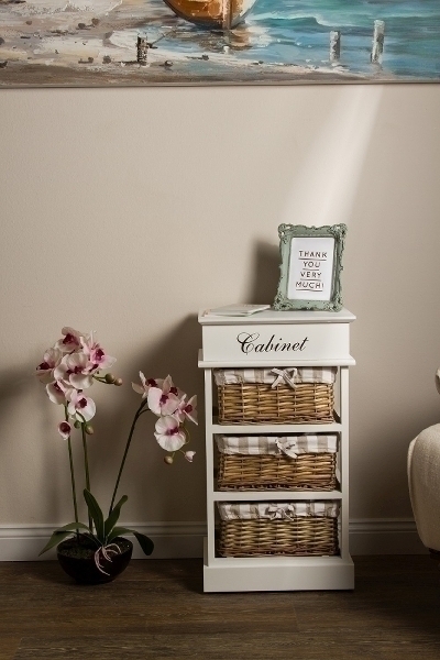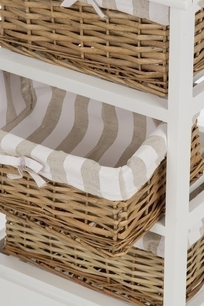 Die Kommode ''Joana'' mit drei Körben ist komplett im klassischen Landhausstil gehalten.