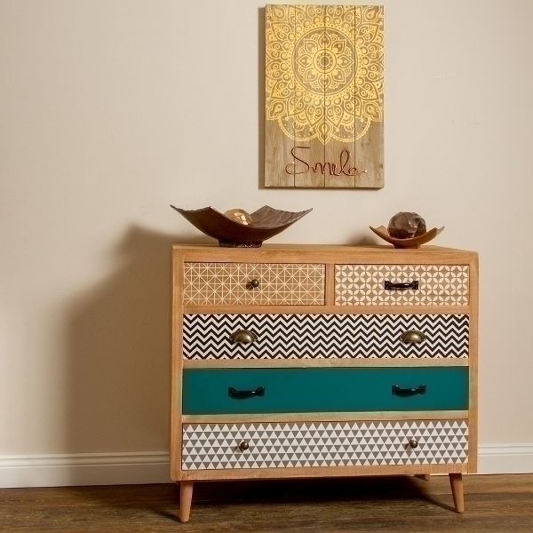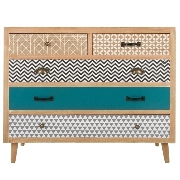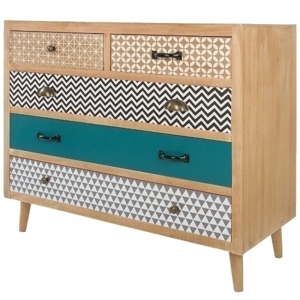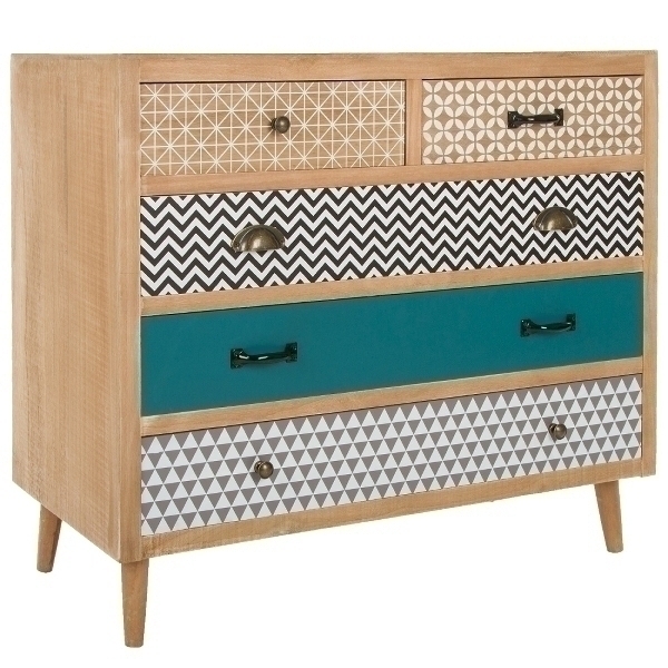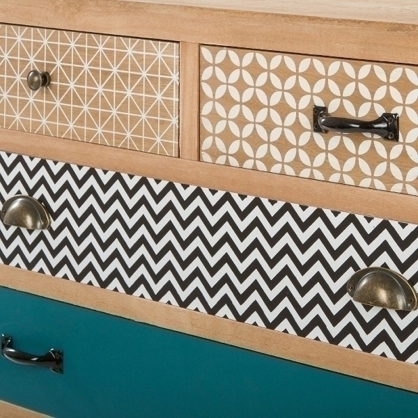 - 70er Jahre Kommode mit bedruckten Schubladen