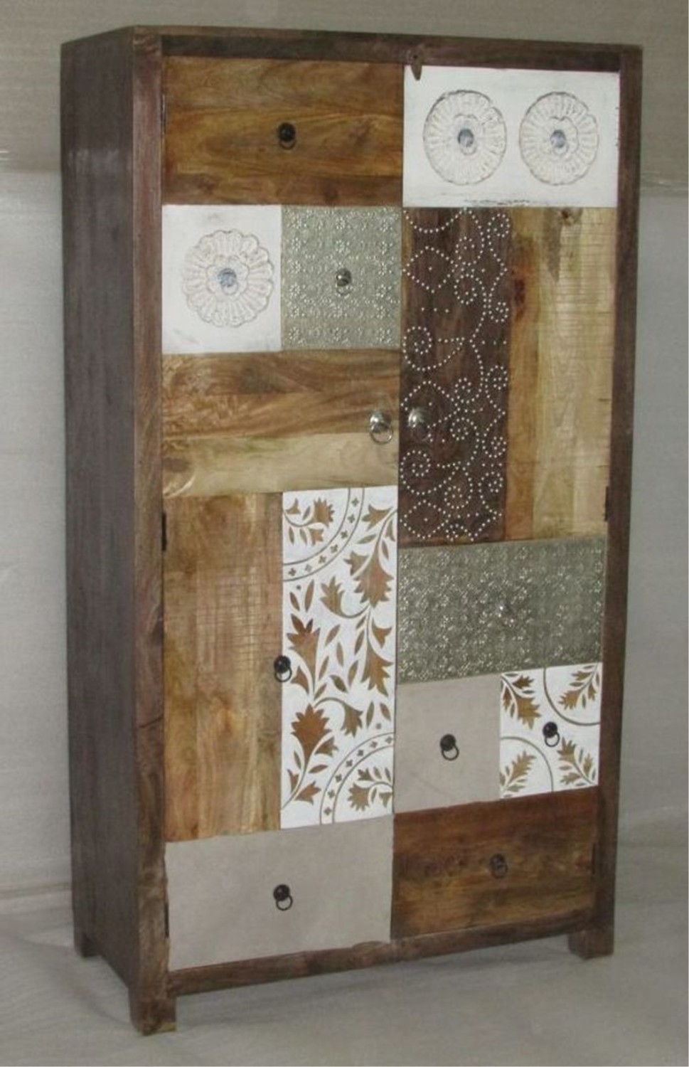 Produktinformationen "Wooden patch work design 2 door almirah W/CARVING, PAINTING, WHITE METAL, LEATHER & NAIL D"