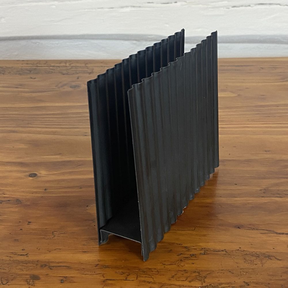 Serviettenhalter " LAMORY" in Industrialook / Metallblech dunkel. Der Halter wurde aus gewelltem Blech von Hand gefertigt. Das perfekte Detail für Dein Esszimmer im Industriallook.