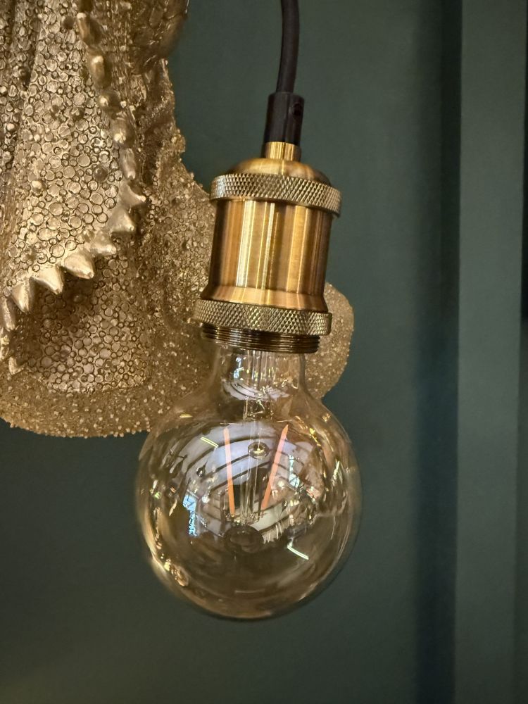 Das plastisch gearbeitete Schuppenkleid und die hochwertige Metallfassung verleihen der Leuchte einen edlen, fast skulpturalen Charakter. Ideal für alle, die besondere Akzente setzen möchten.