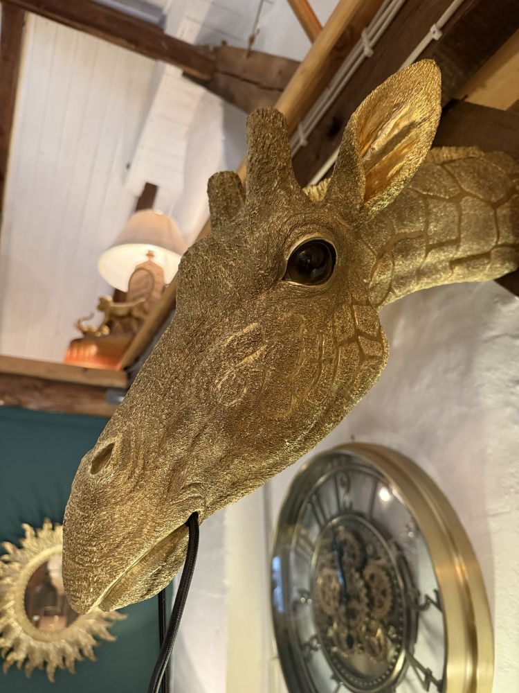 Wandleuchte „Golden Giraffe“ – Design Giraffenkopf mit Messingfassung
