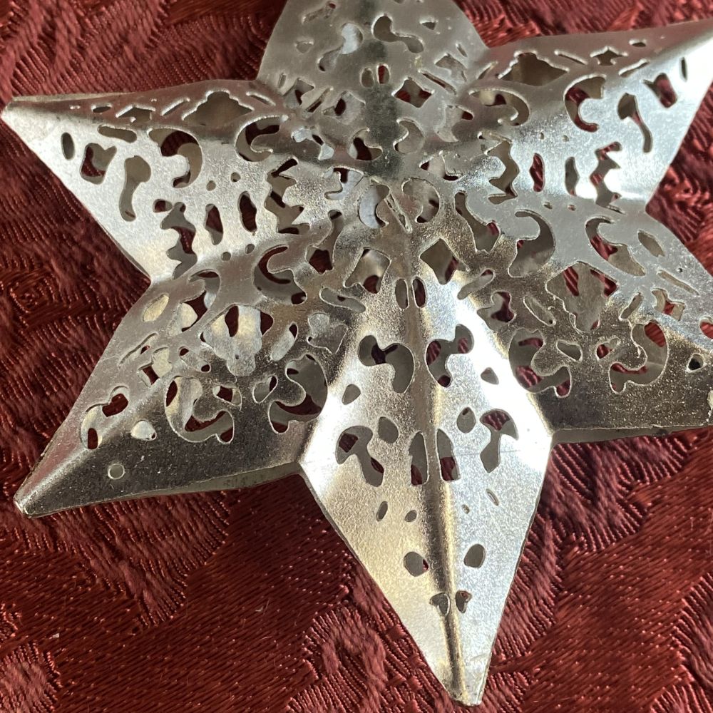 Produktinformationen "Weihnachtsbaumschmuck aus Metall / Stern durchbrochen von Hand gearbeitet"