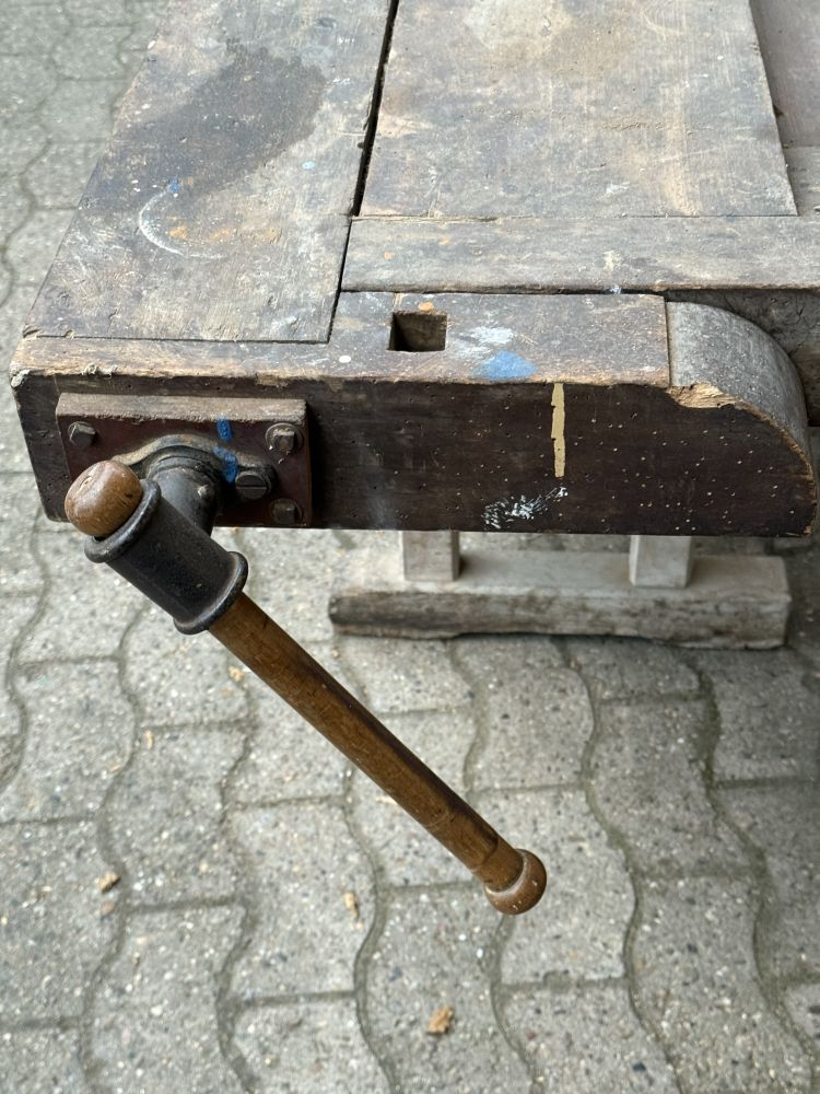 Antike Hobelbank „Werkstattliebe“ um 1910 – massive Buchenholz-Werkbank