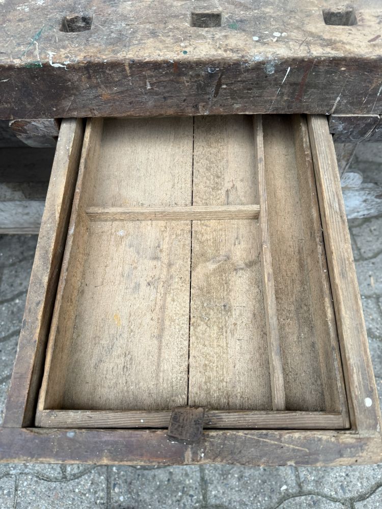 Besonderheiten: Schraubstock, Bankhakenlöcher, Schublade mit Einteilung, massive Bauweise