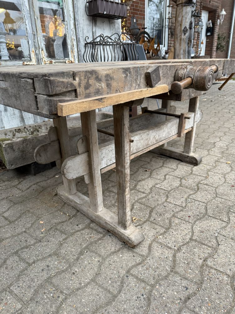 Originale Schreinerbank mit Schraubstock, ehrlicher Patina und jahrzehntelanger Gebrauchsgeschichte – rustikales Deko- und