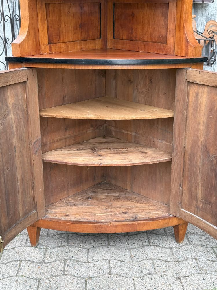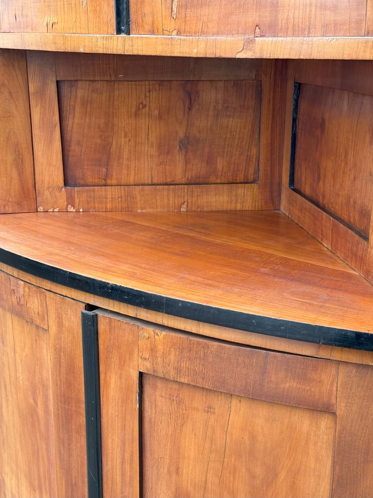 Produktinformationen "Antiker Biedermeier Eckschrank – Kirschbaumfurnier auf Weichholz, unrestauriert mit Charakter"