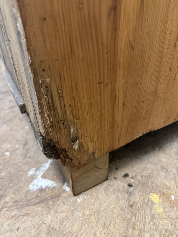 Wir bieten den Schrank bewusst als unrestauriert an – ideal als charmantes Einzelstück mit Geschichte oder als DIY-Projekt für Liebhaber historischer Möbel.