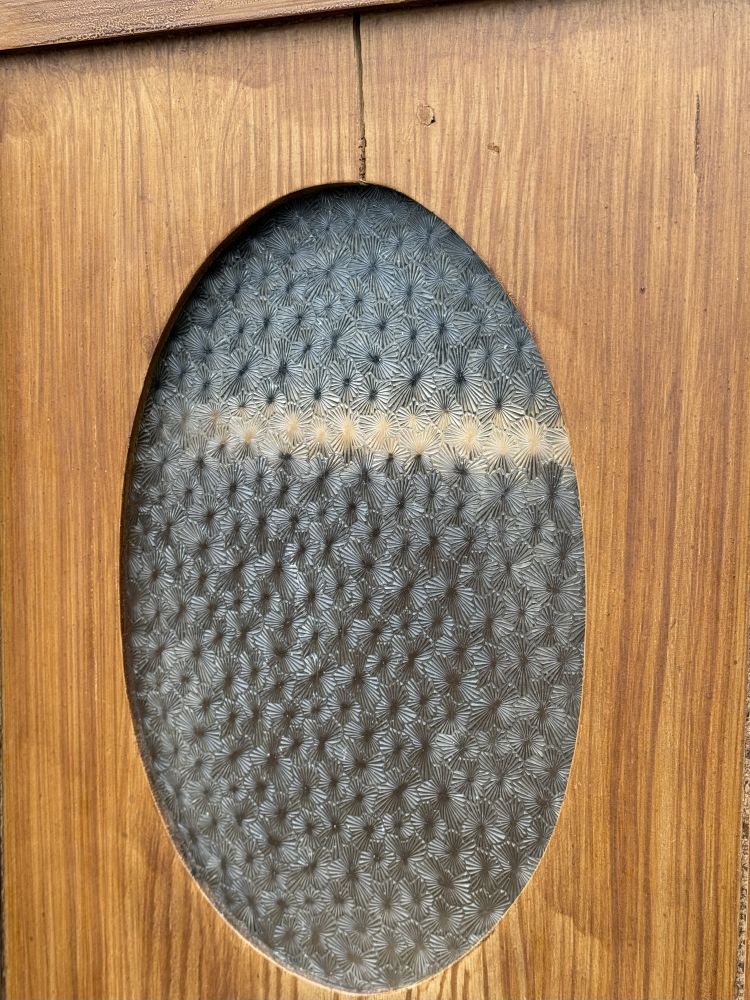 Ein echter Hingucker sind die ovalen Glaseinsätze mit feinem Muster im oberen Türbereich – charmant, elegant und typisch für die Zeit.