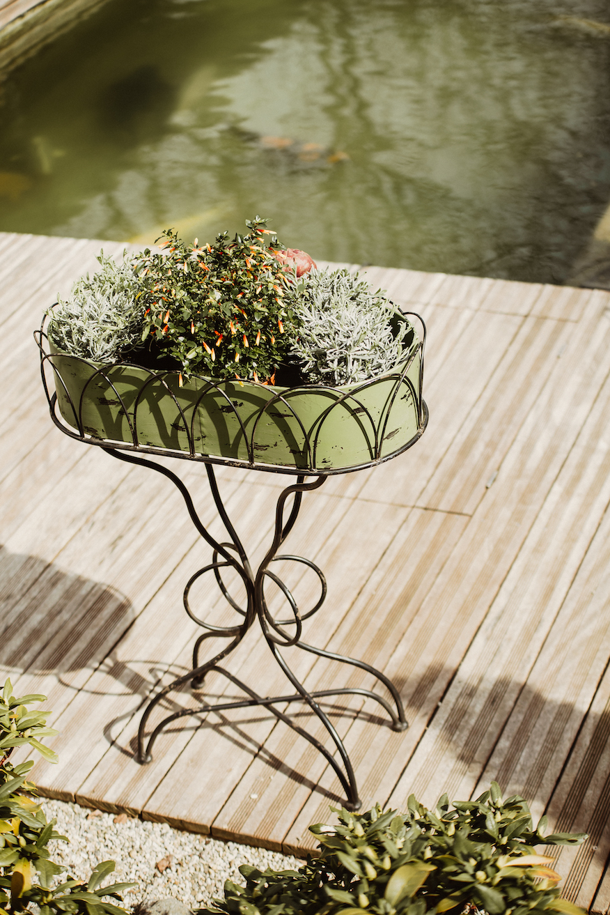 Blumentisch im Vintage-Look – Antikgrüne Eleganz für Garten, Balkon & Wohnbereich