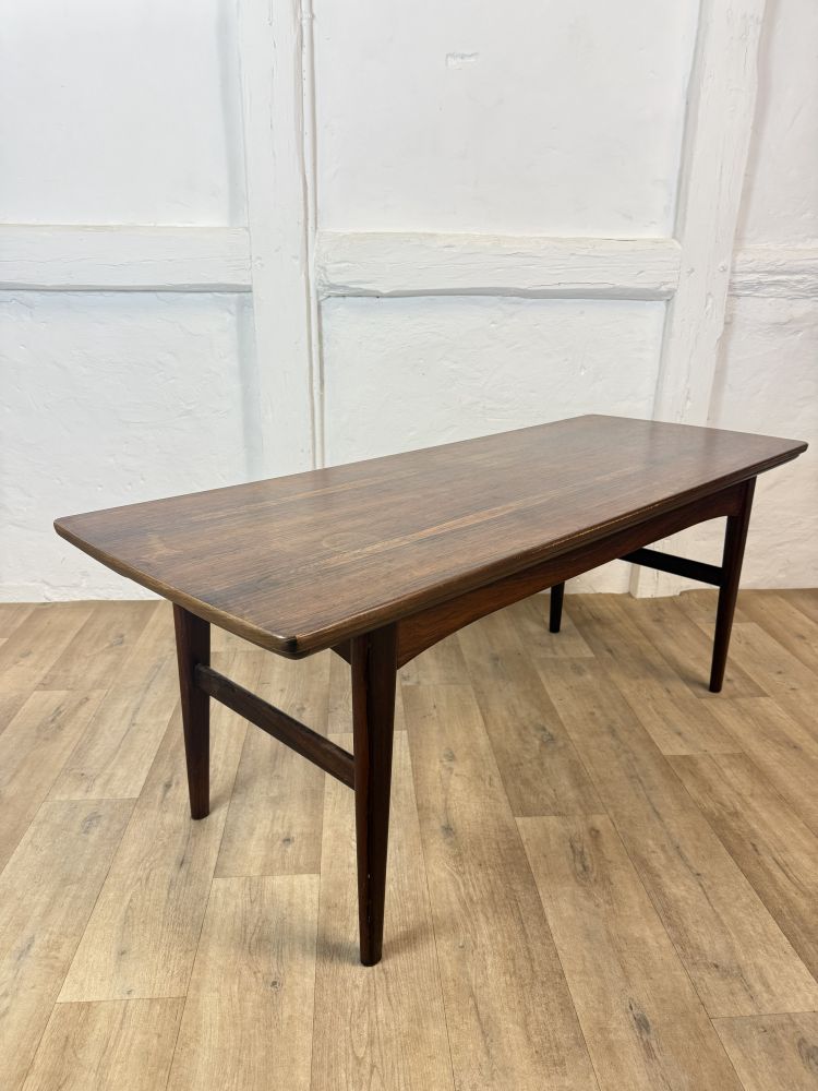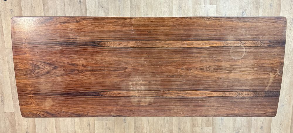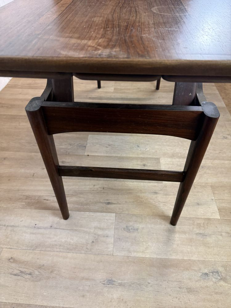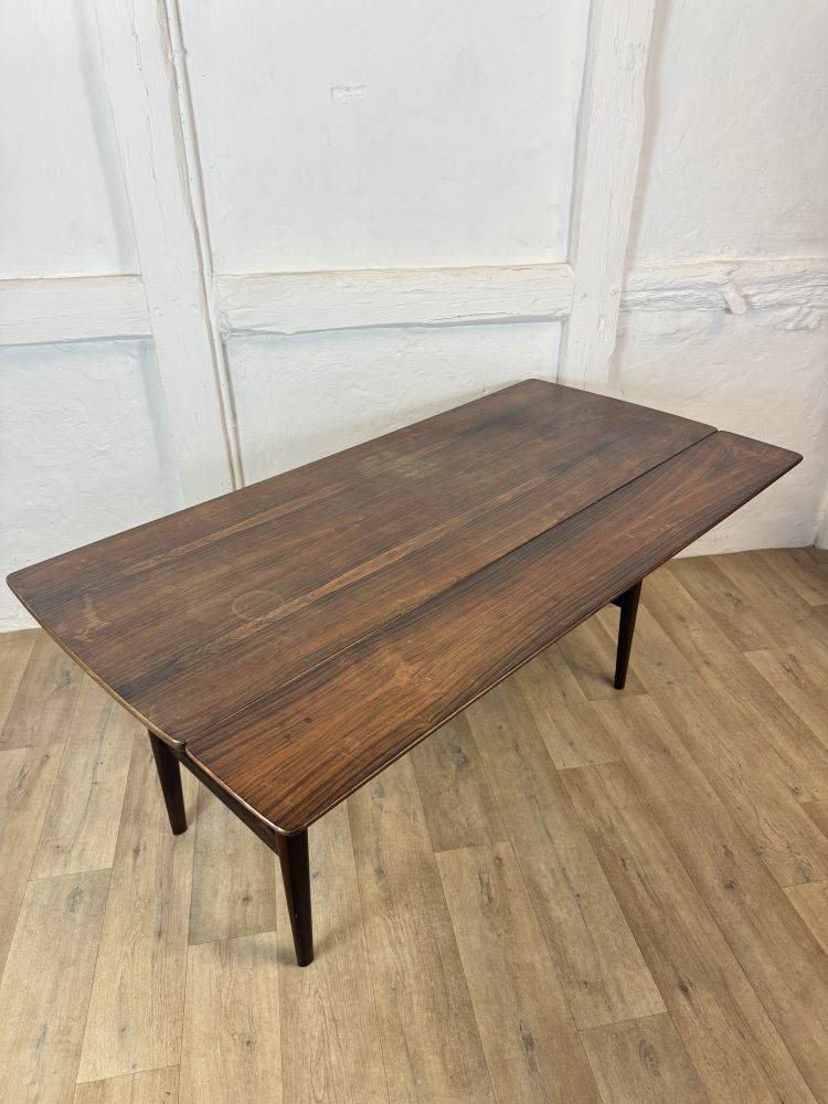 Dieser außergewöhnliche dänische Mid-Century-Modern Tisch aus Palisander wurde um 1964 nach einem Entwurf von Niels Bach gefertigt und vereint ikonisches skandinavisches Design mit durchdachter Funktionalität. Ein echtes Sammlerstück für Liebhaber authentischer Designklassiker – und zugleich ein perfektes Möbel für Menschen, die selbst restaurieren möchten.