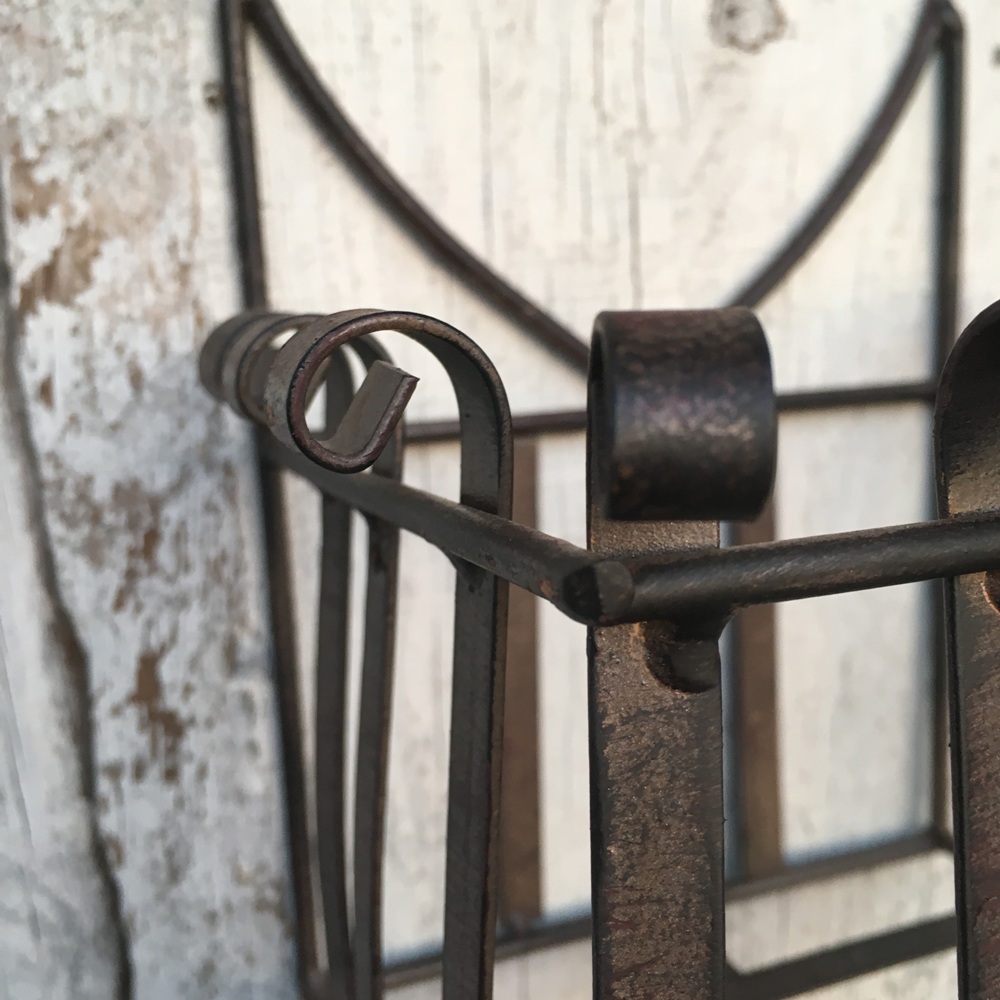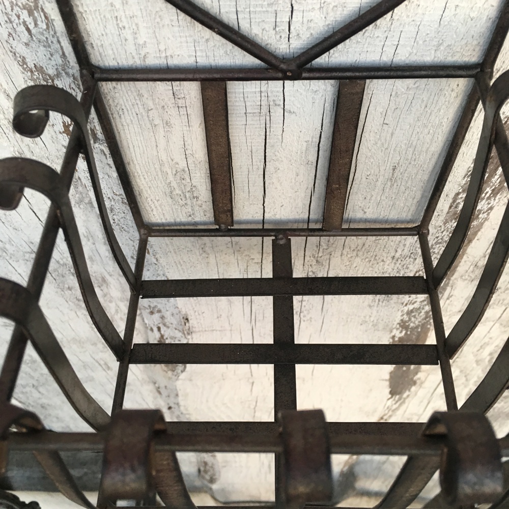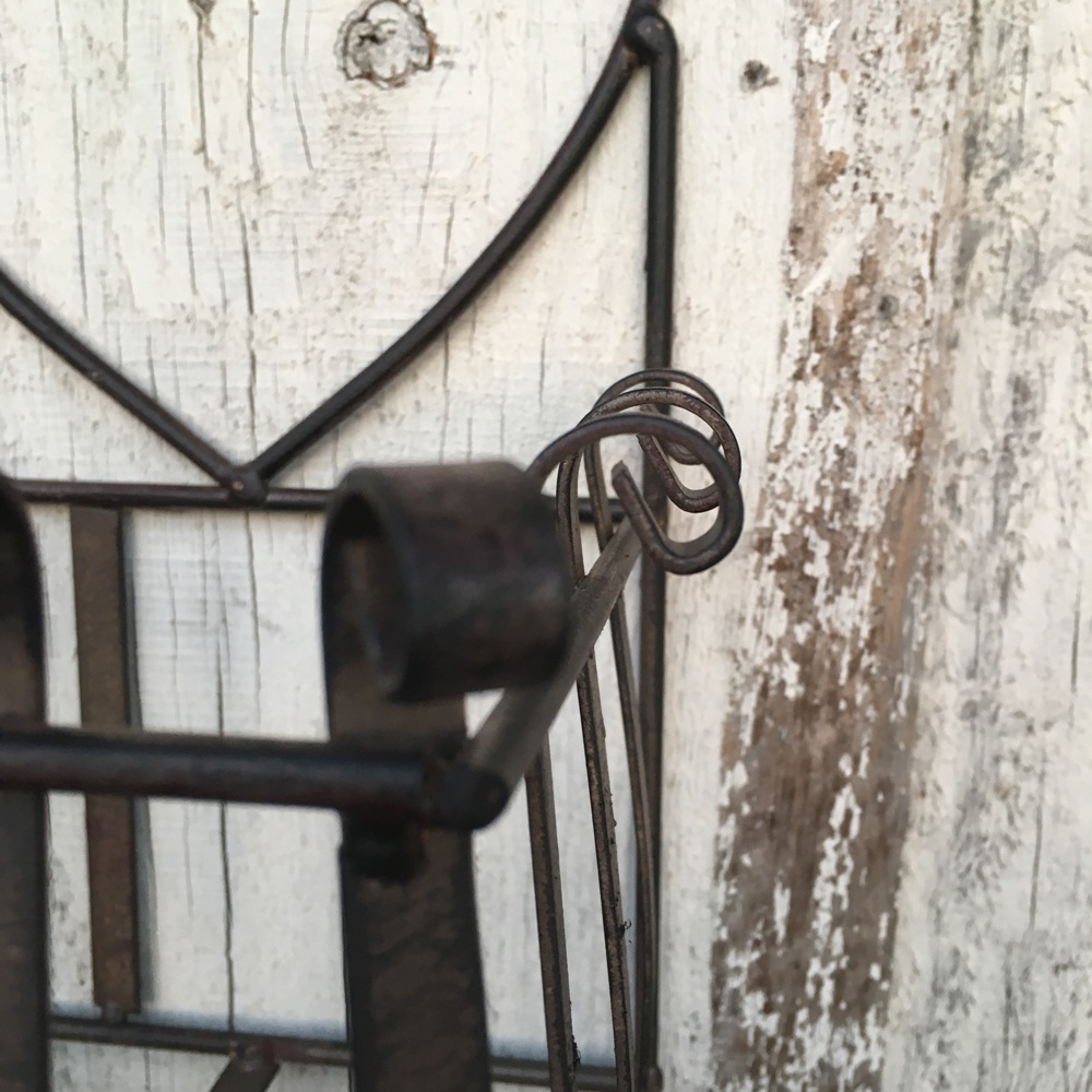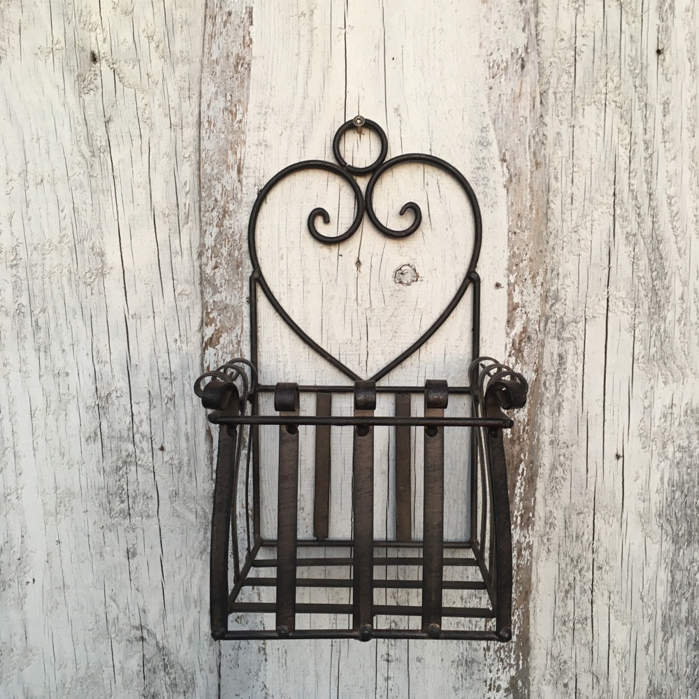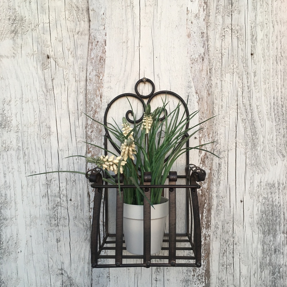 stabiler Wandkorb in dunkelrostfarbend lackiertes Metall. Hübsch verziert. Caserta bietet Platz für 1-2 Blümchen oder einem schönem Gartenobjekt.