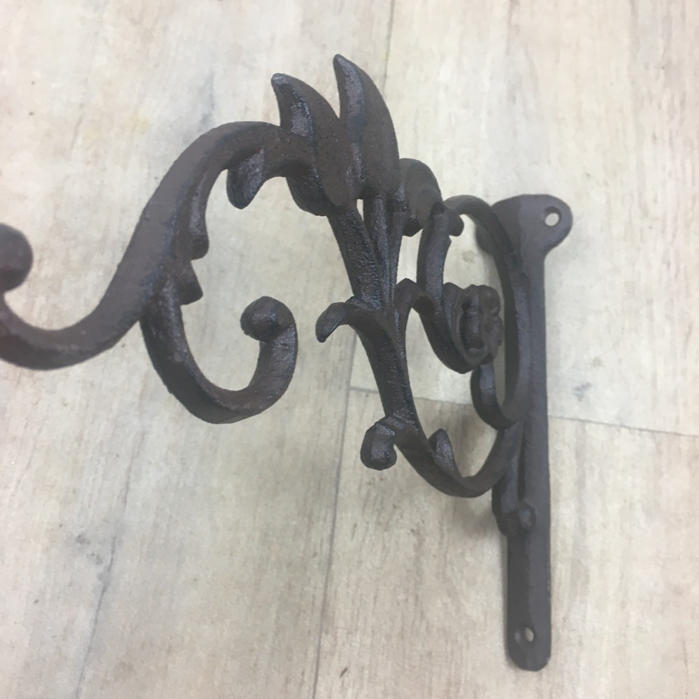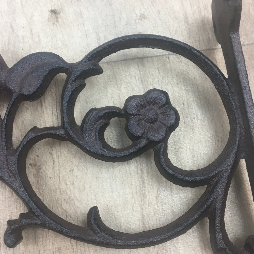 der hübsch verzierte Wandhalter " ZEPPINA" ist aus Gußeisen gefertig und dunkelrostfarbend patiniert.