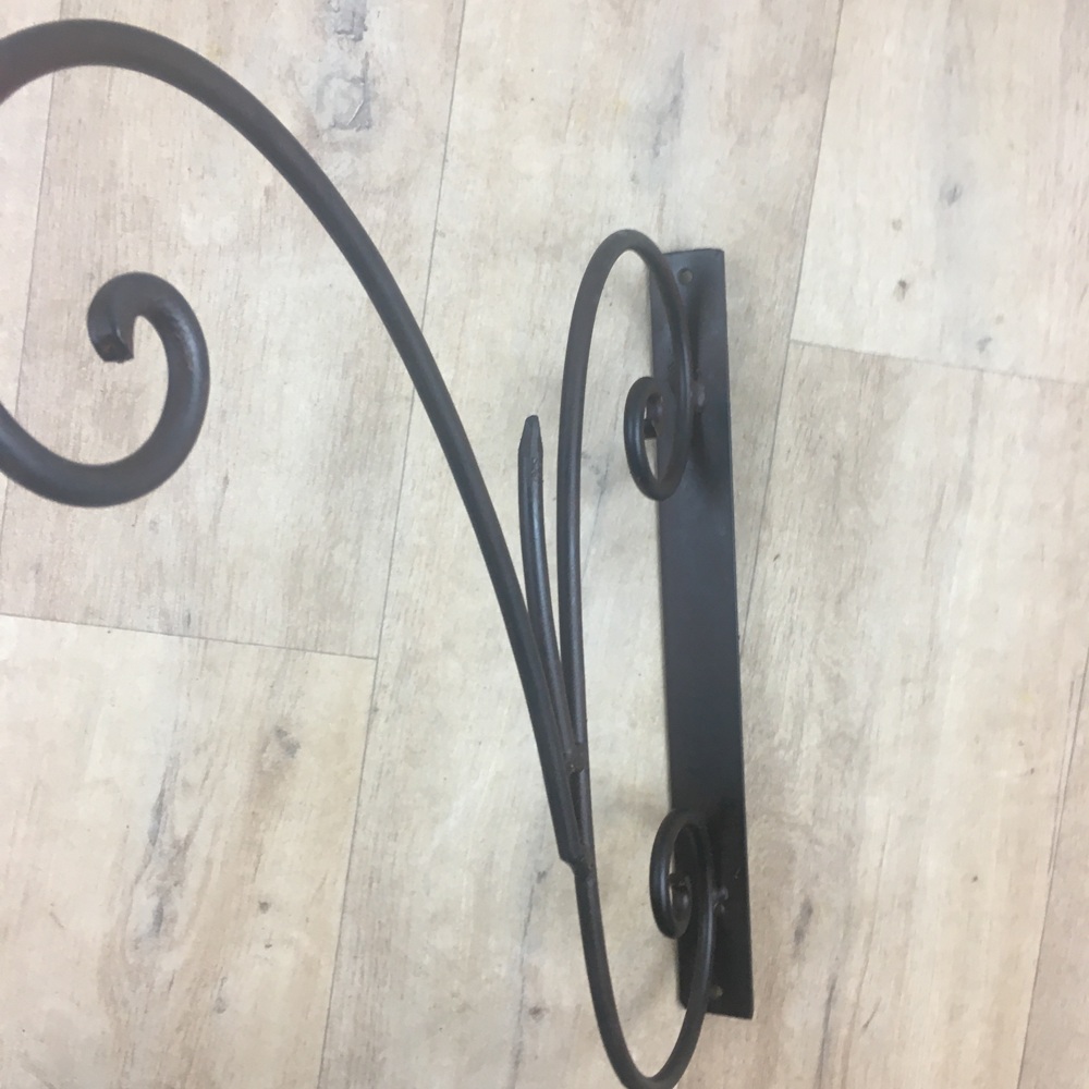 der hübsch verzierte Wandhalter "SCONFITTA" ist aus Metall gefertig und dunkelrostfarbend lackiert. Perfekt für Blumenkörbe & Co.