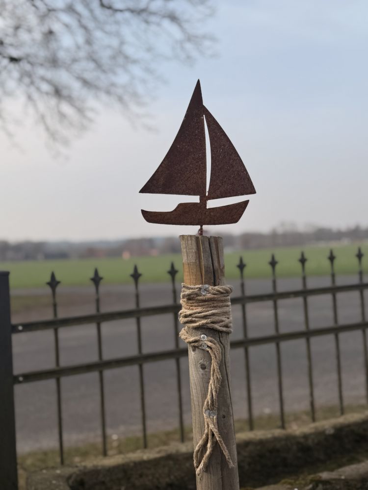 ⚓ Gartenstecker „Segelboot Rost“ – maritime Eisen-Deko zum Einschrauben