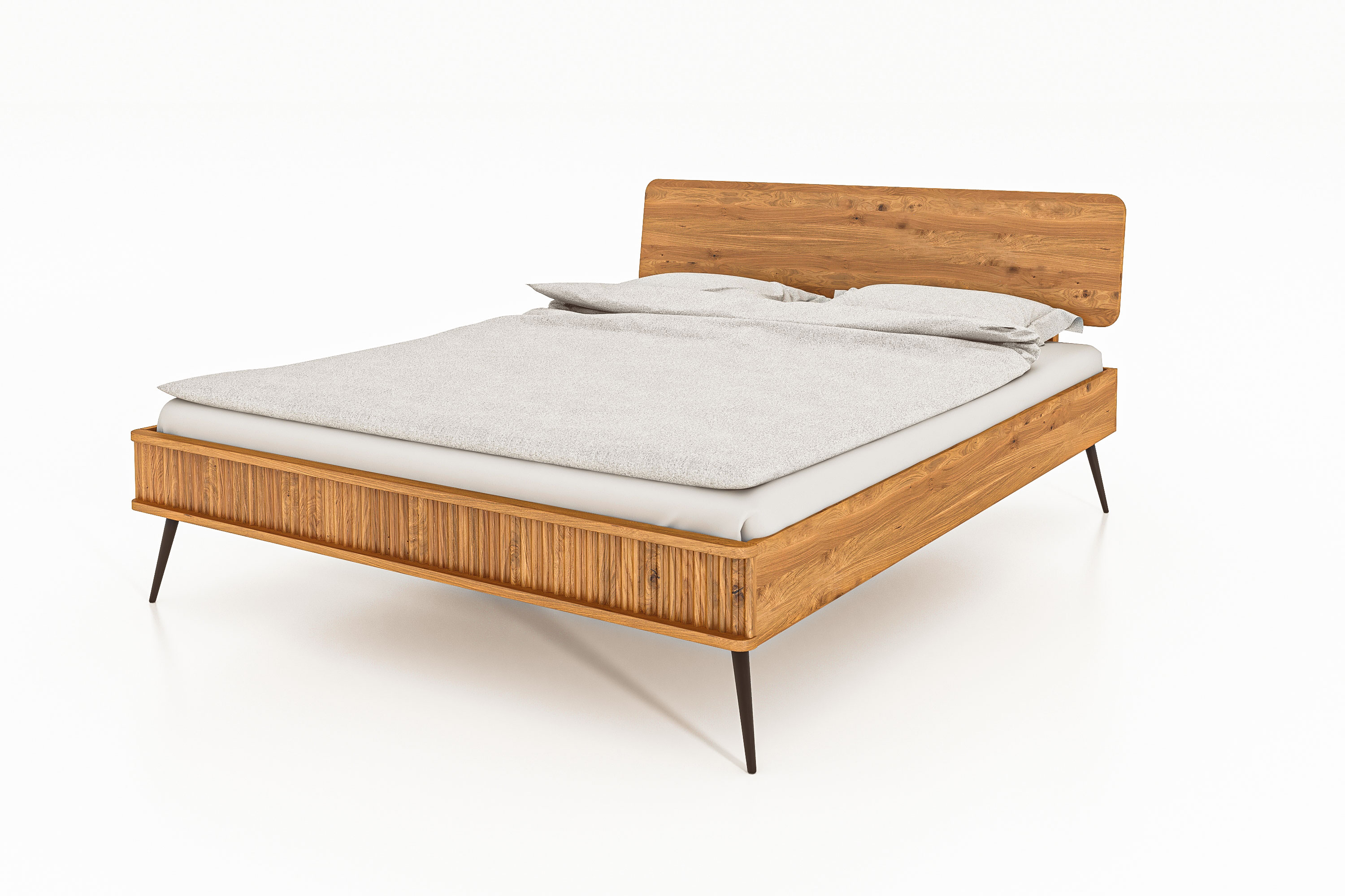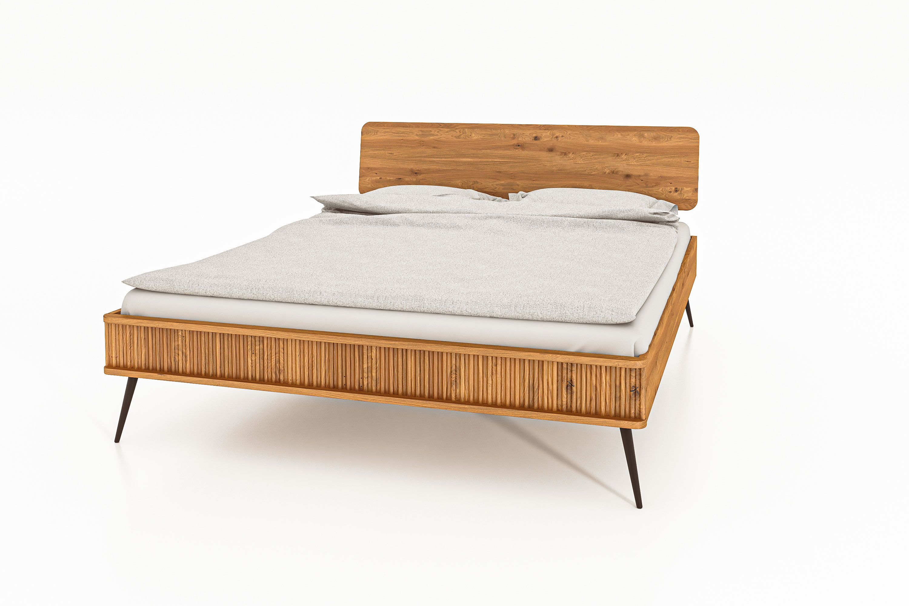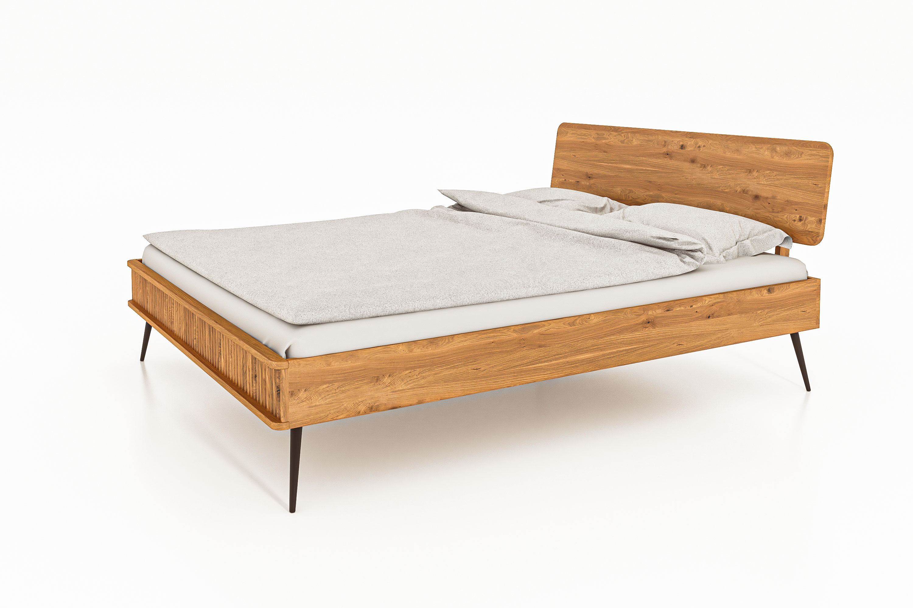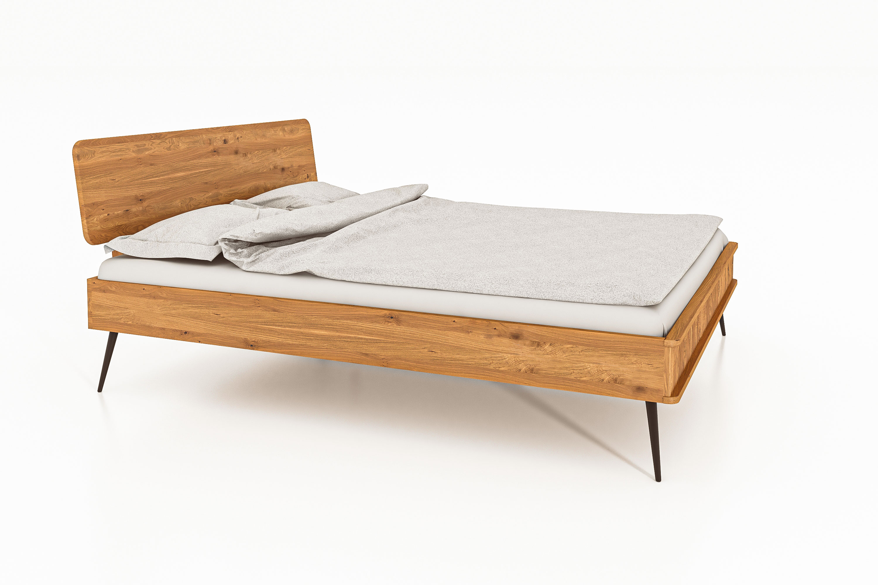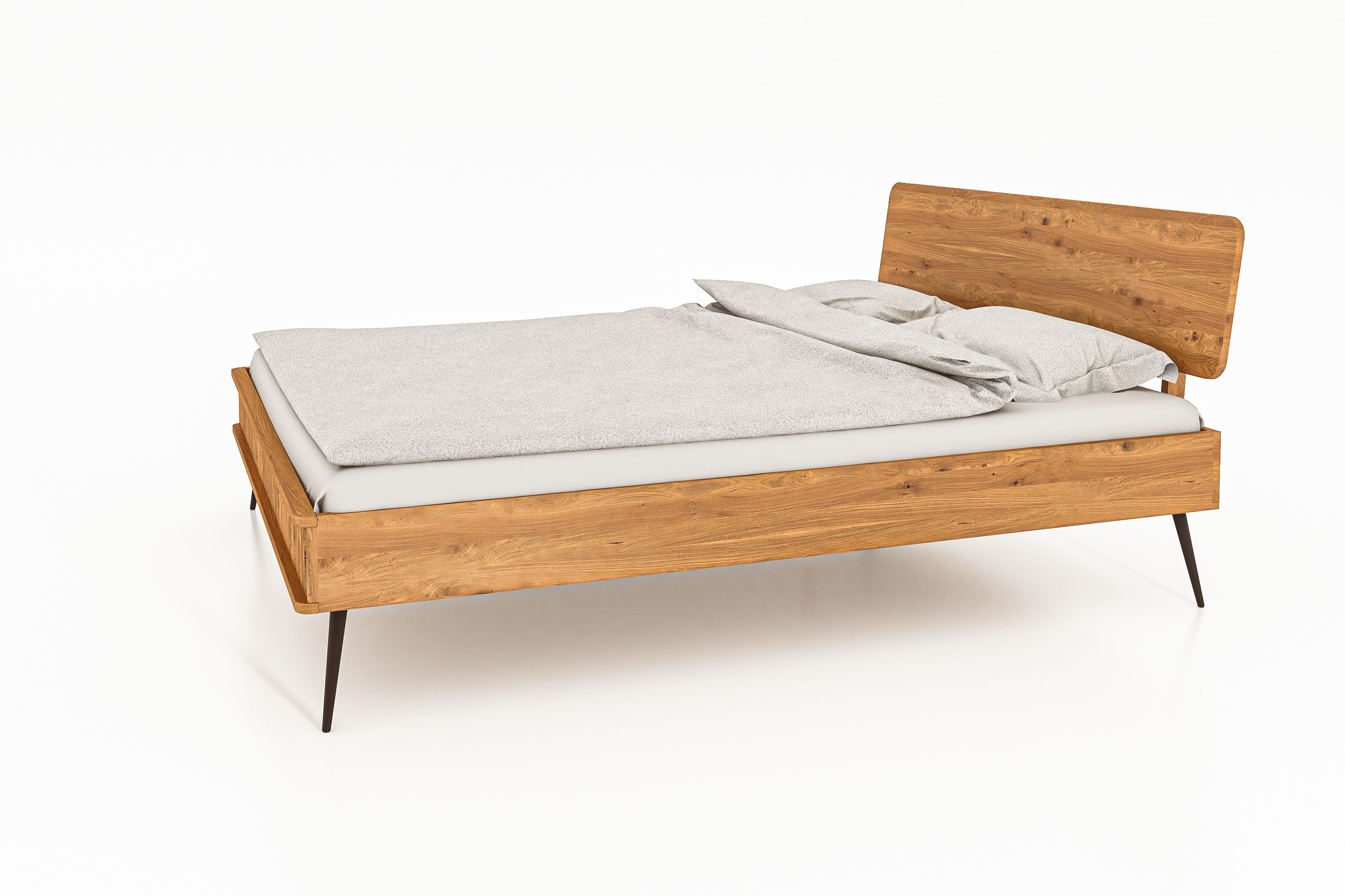Das Bett Kula 2801 bieten wir mit einen Kopfteil aus Holz an, machen Sie es sich bequem mit Ihren eigenen Kissen an dem Rückbrett aus schöner Wildeiche.
