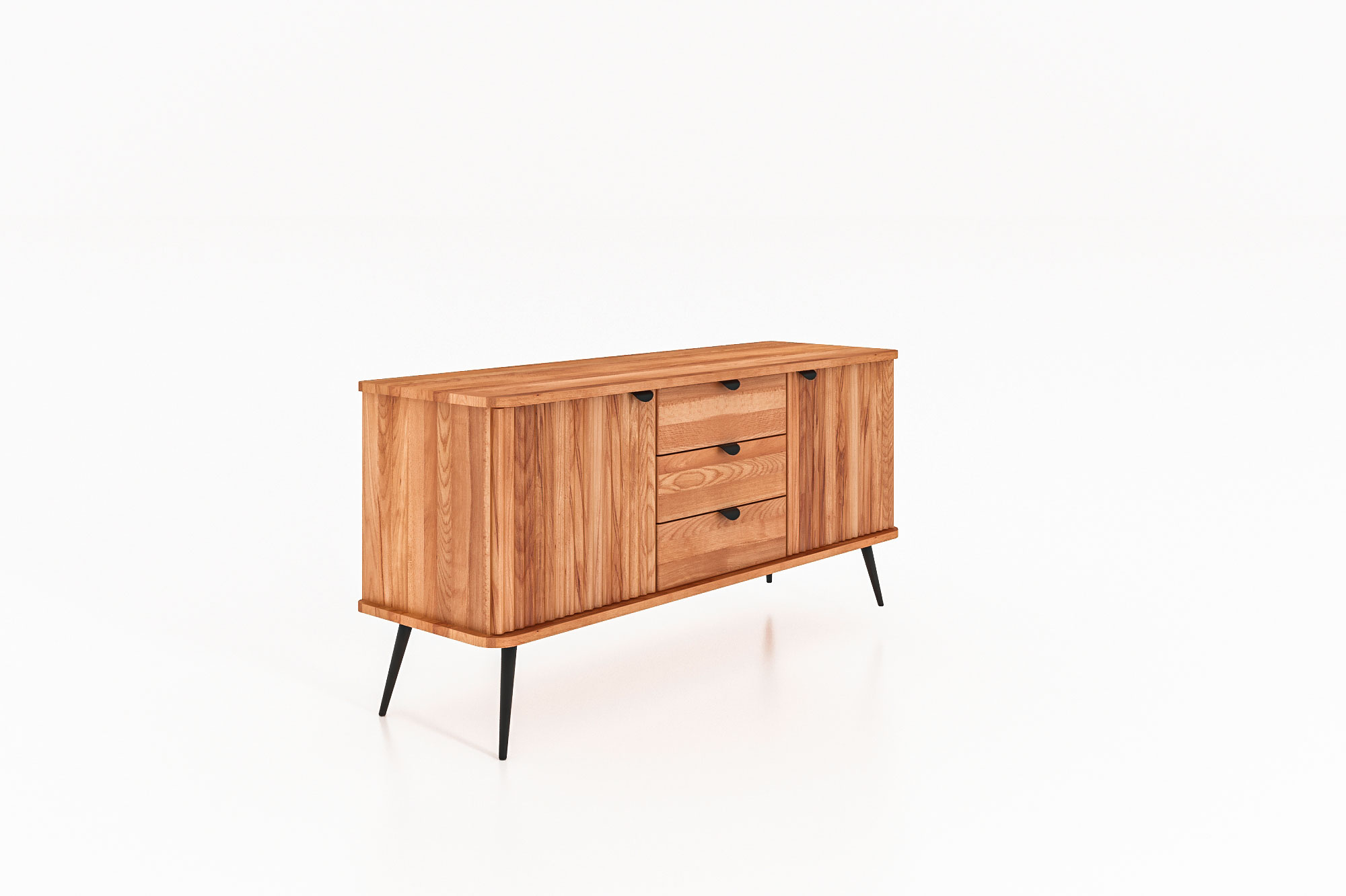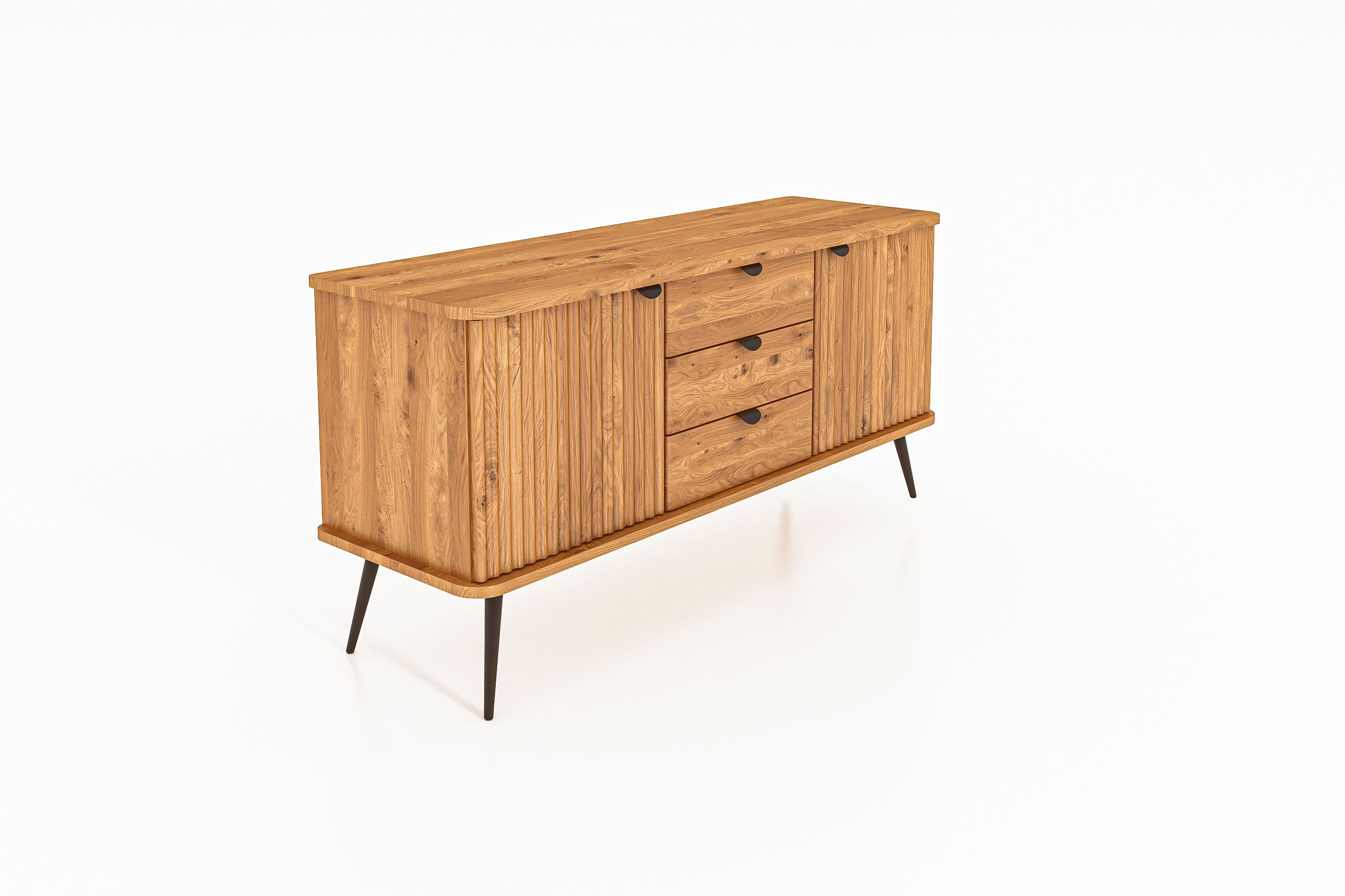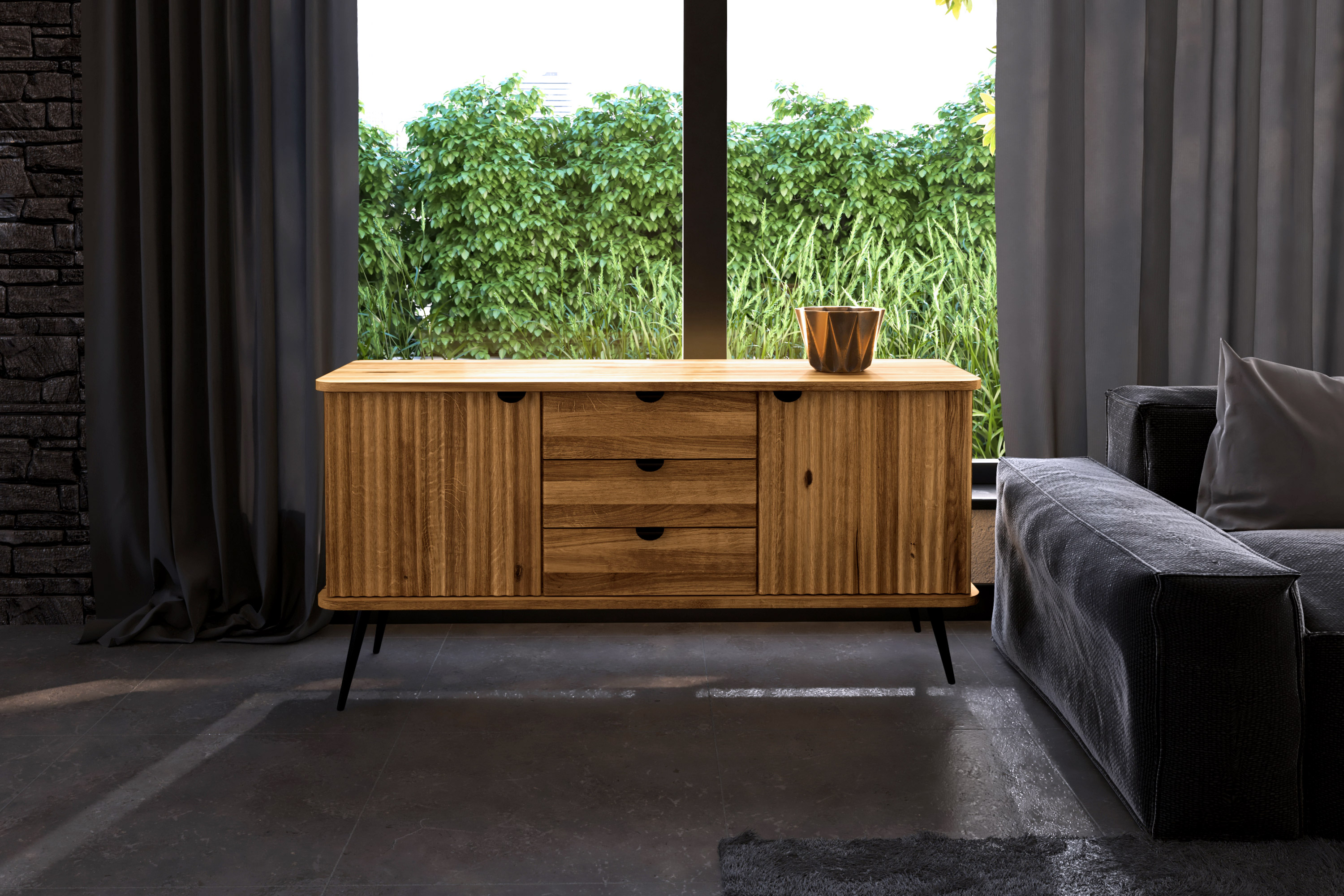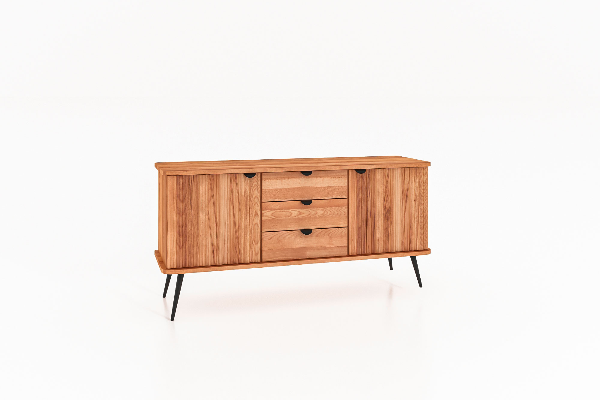 100% aus massivem Holz - durchgehende Lamellen , Lackierter Stahl Matt schwarz