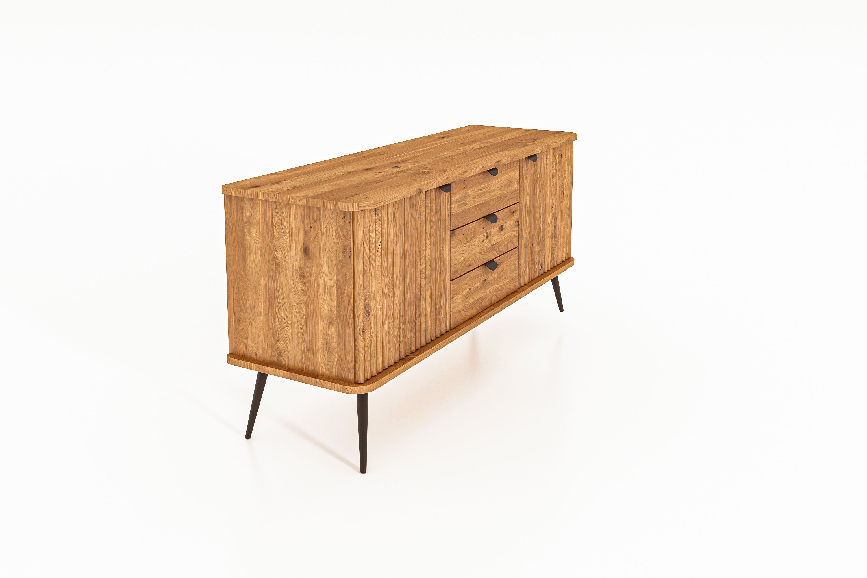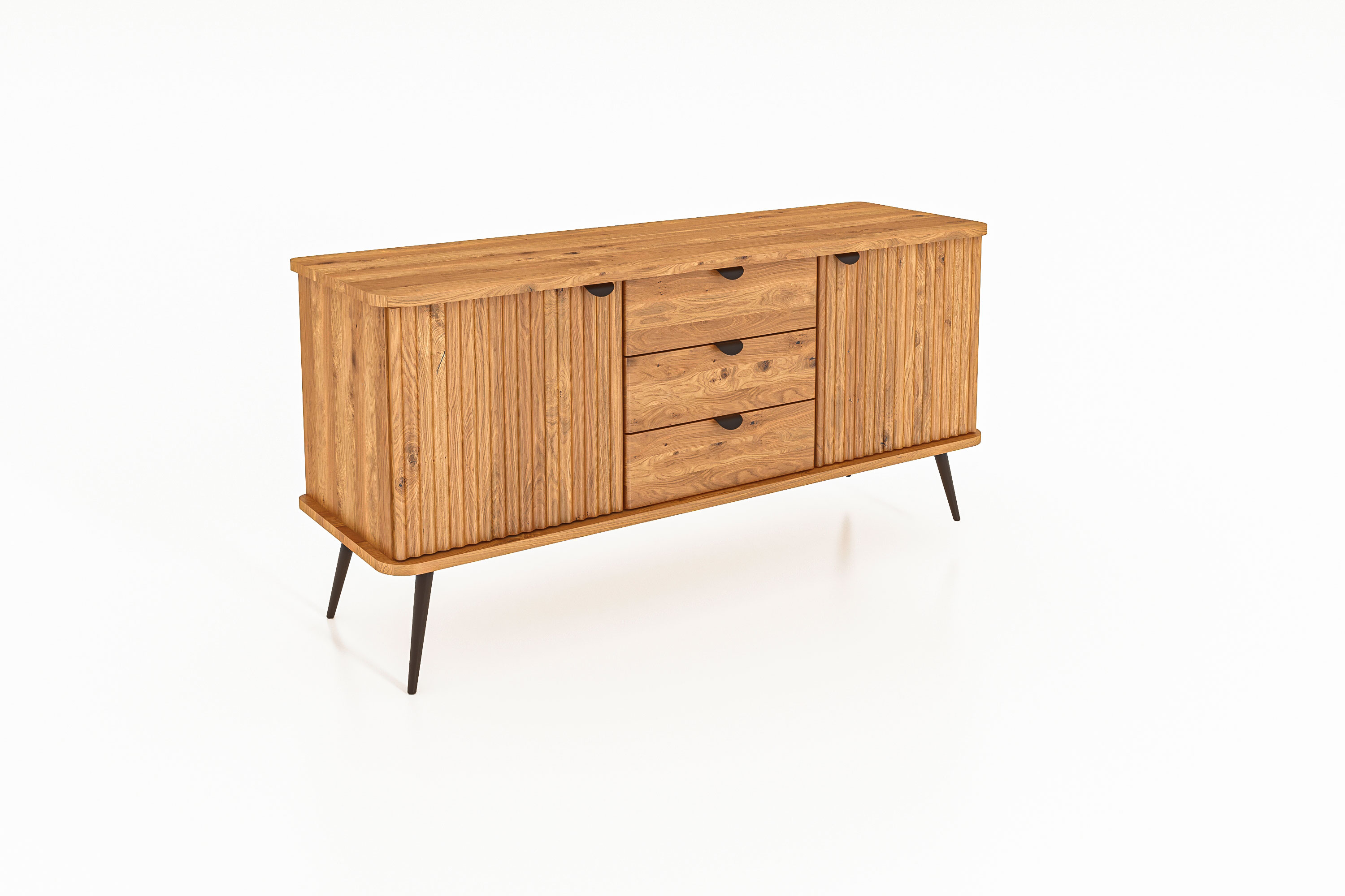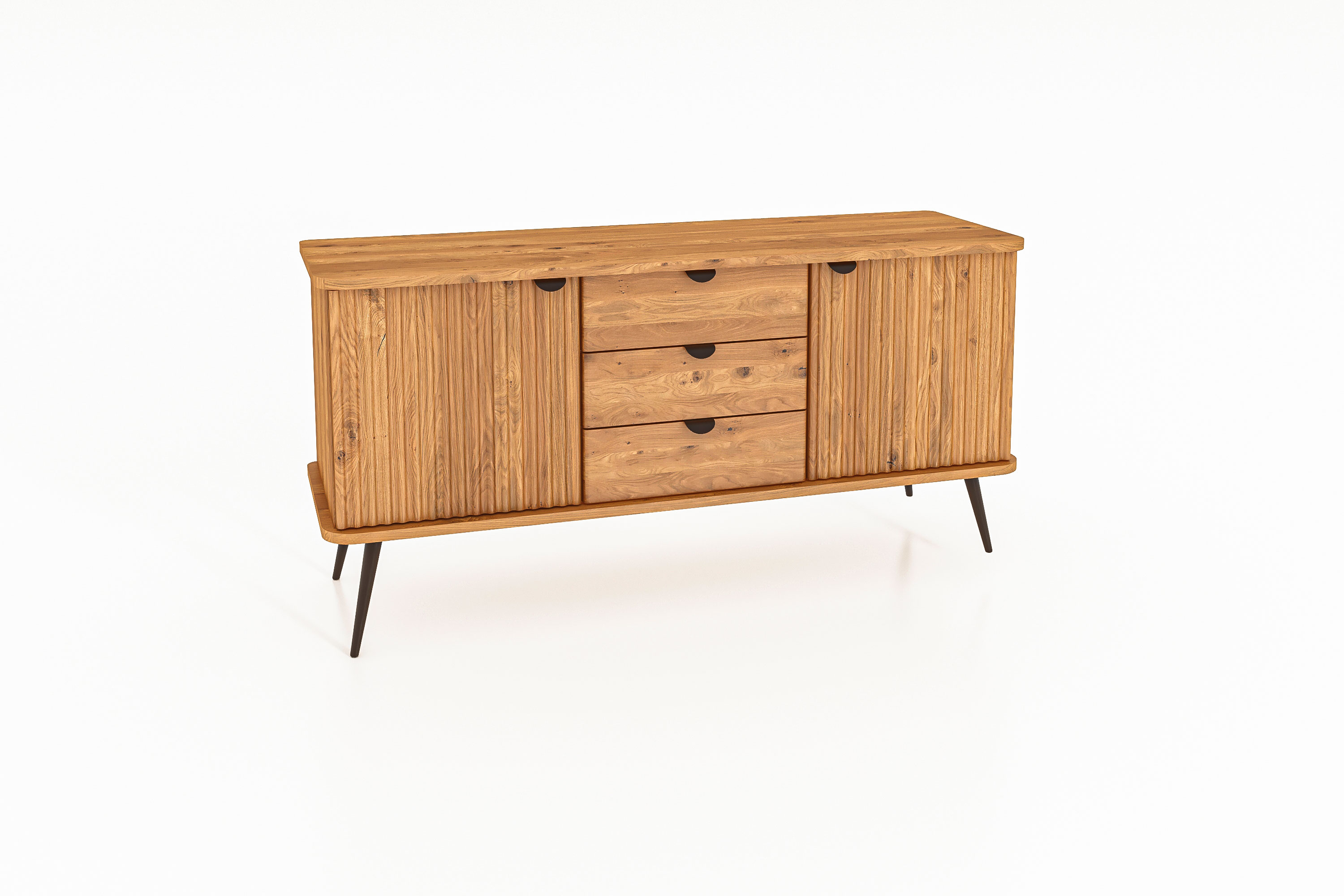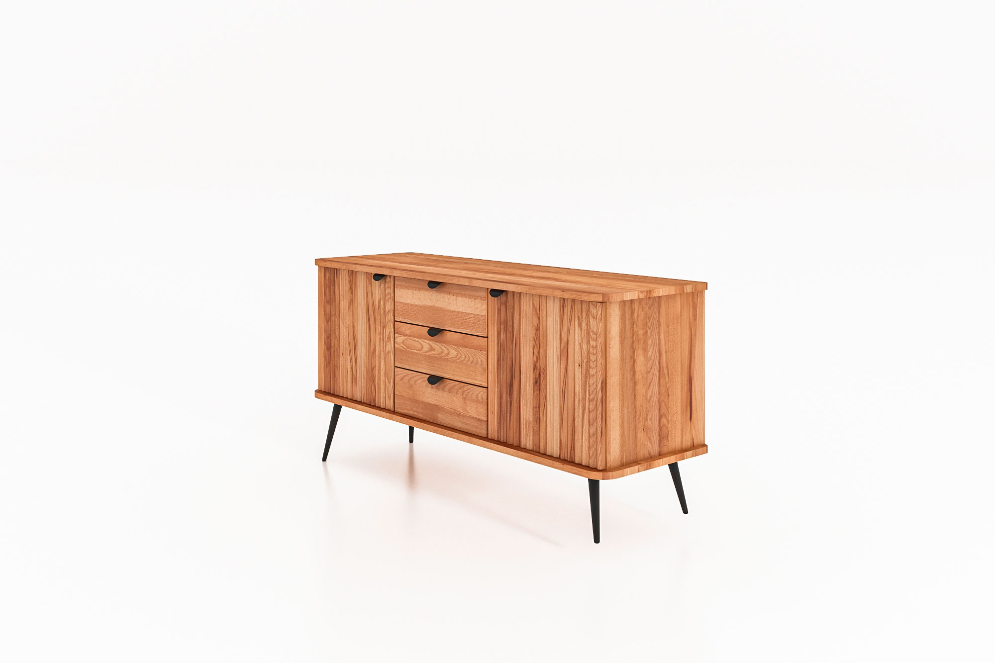 100% aus massivem Holz - durchgehende Lamellen , Lackierter Stahl Matt schwarz