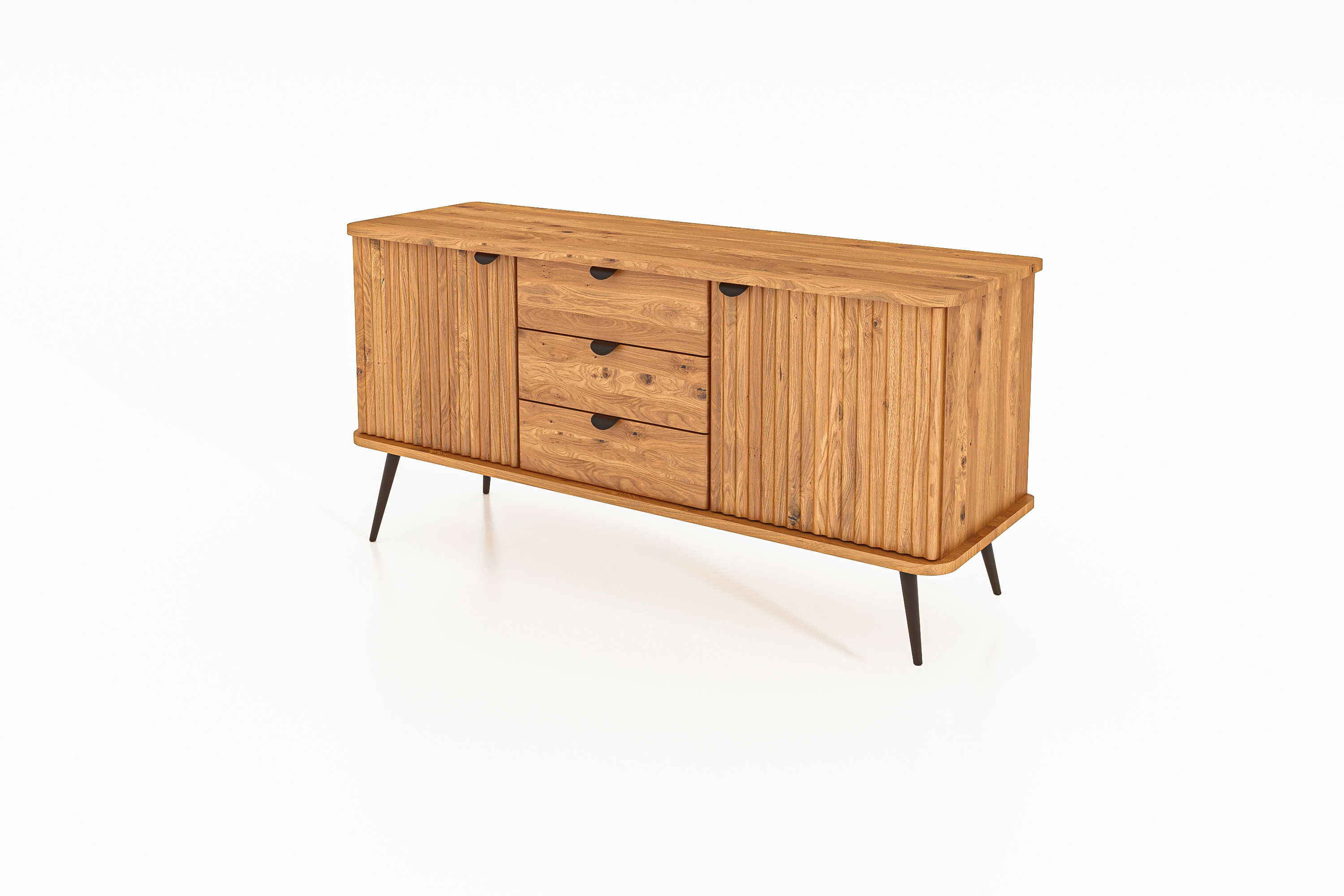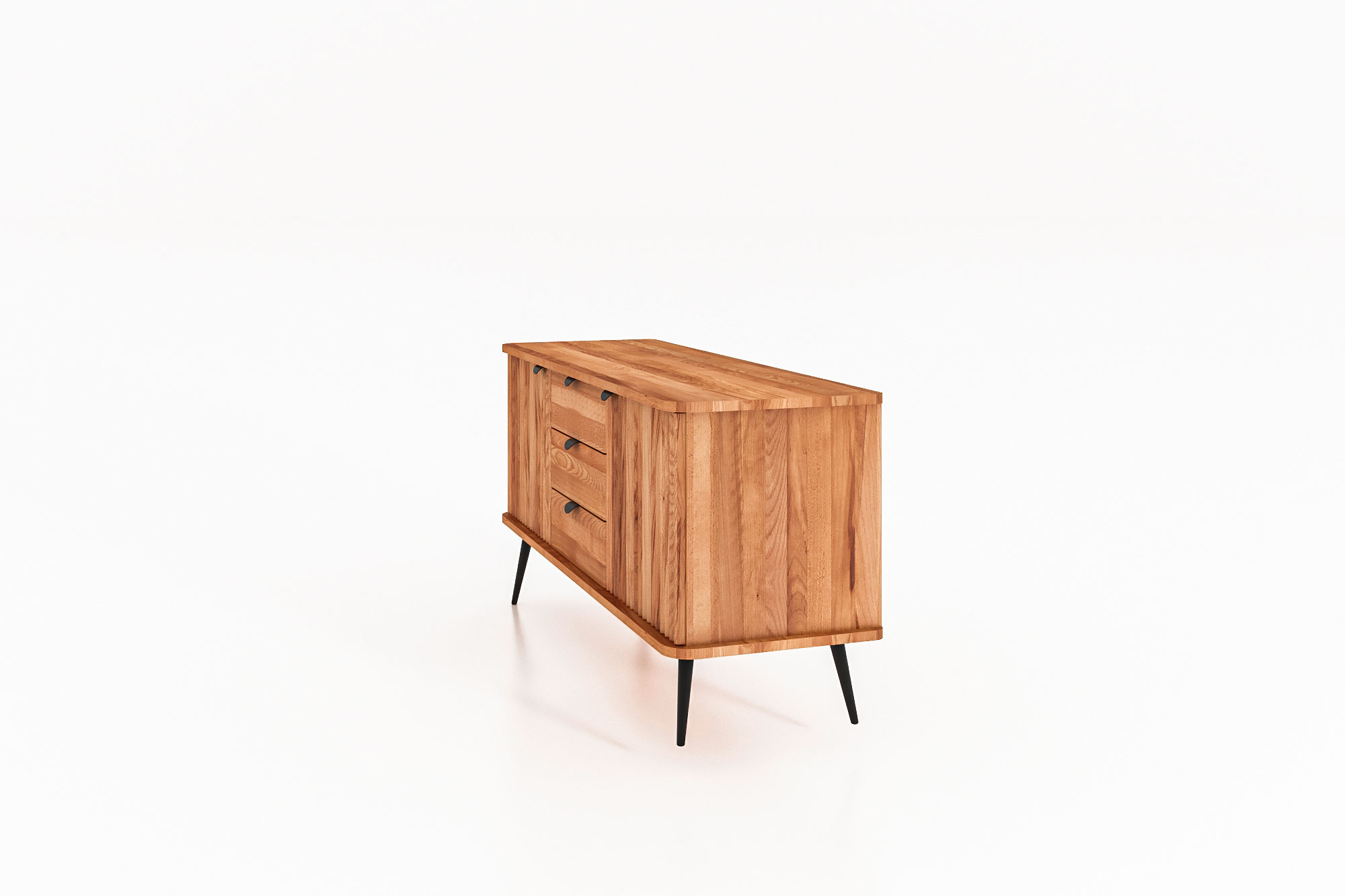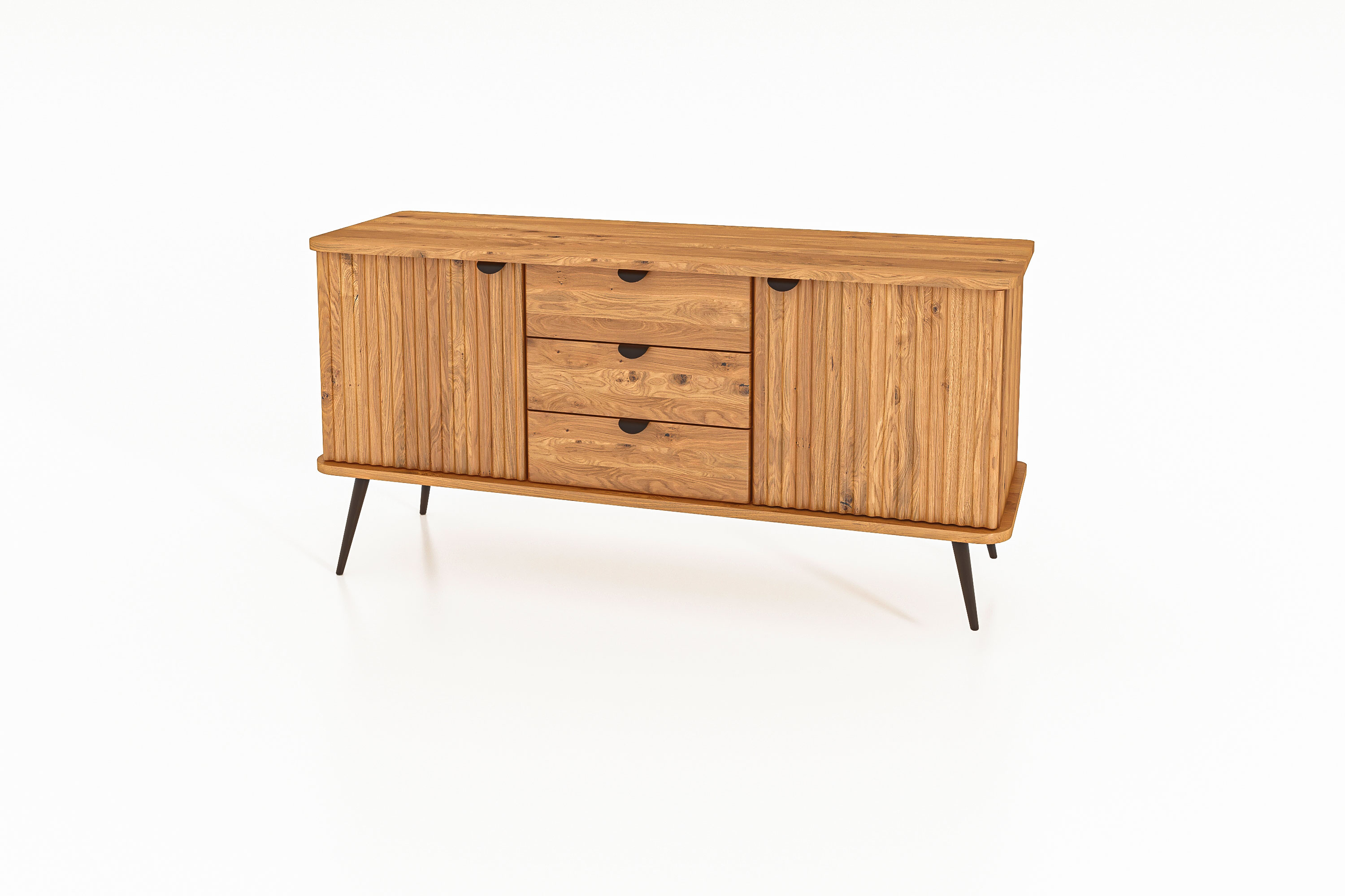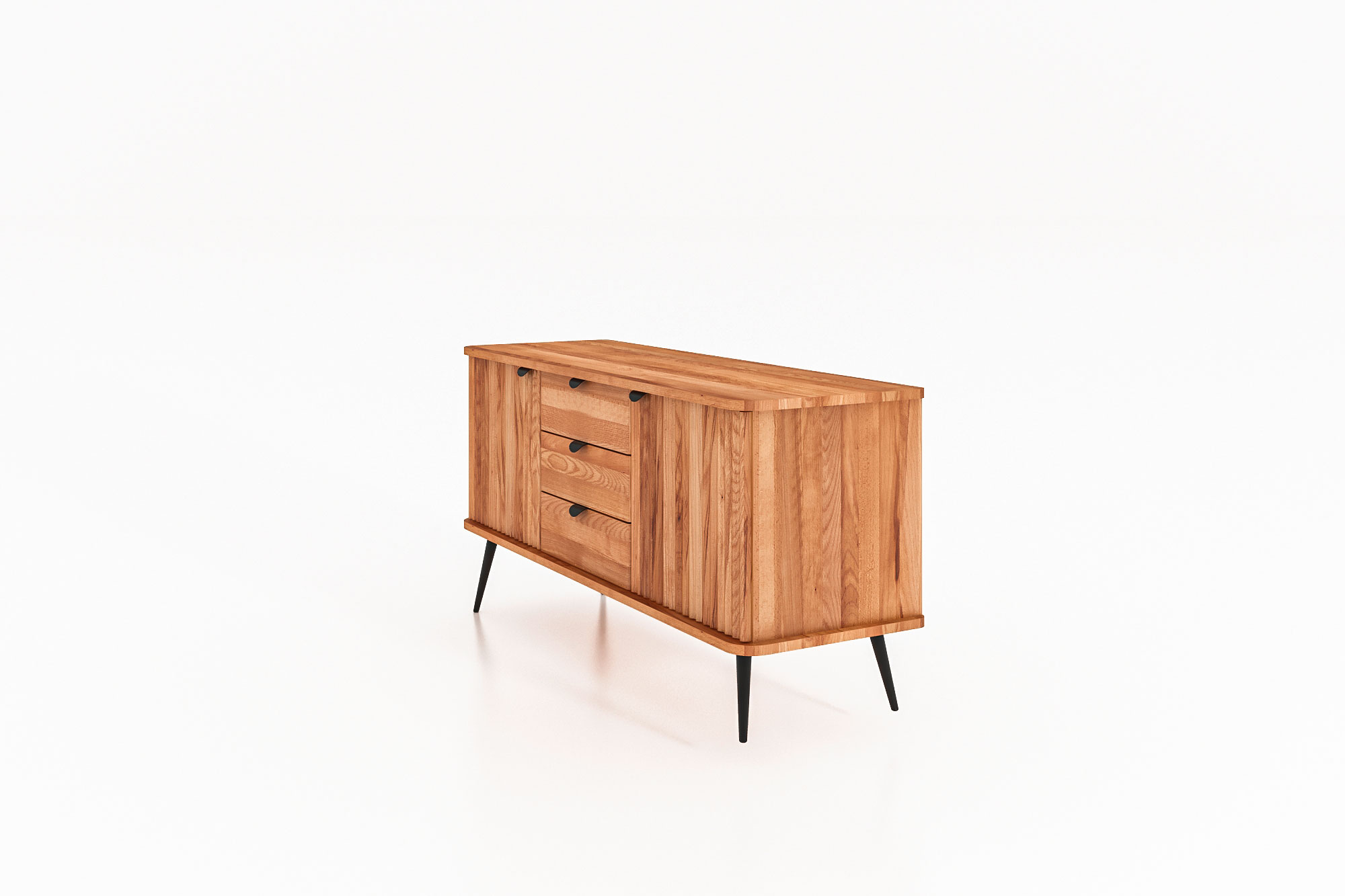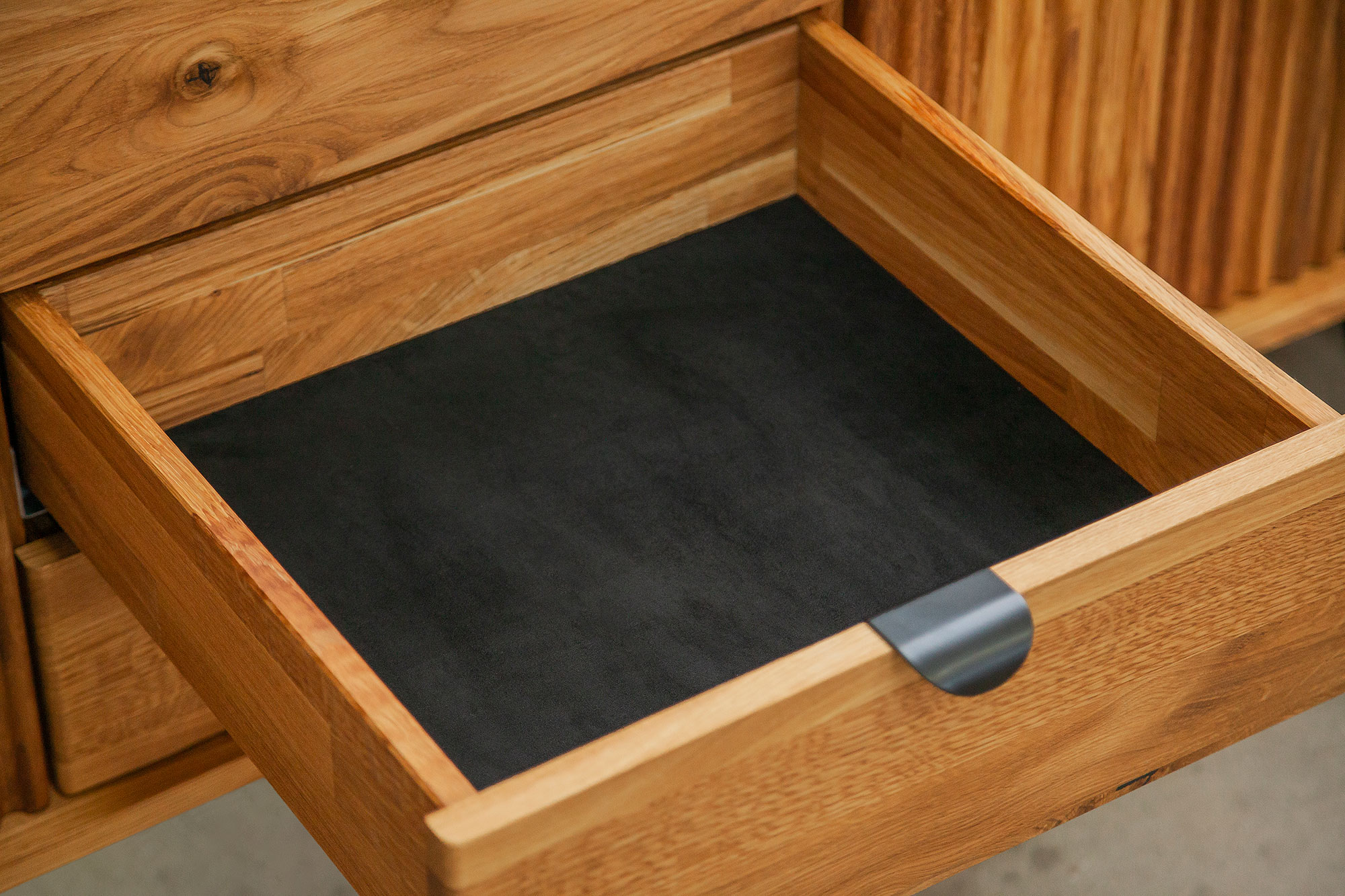 100% aus massivem Holz - durchgehende Lamellen , Lackierter Stahl Matt schwarz