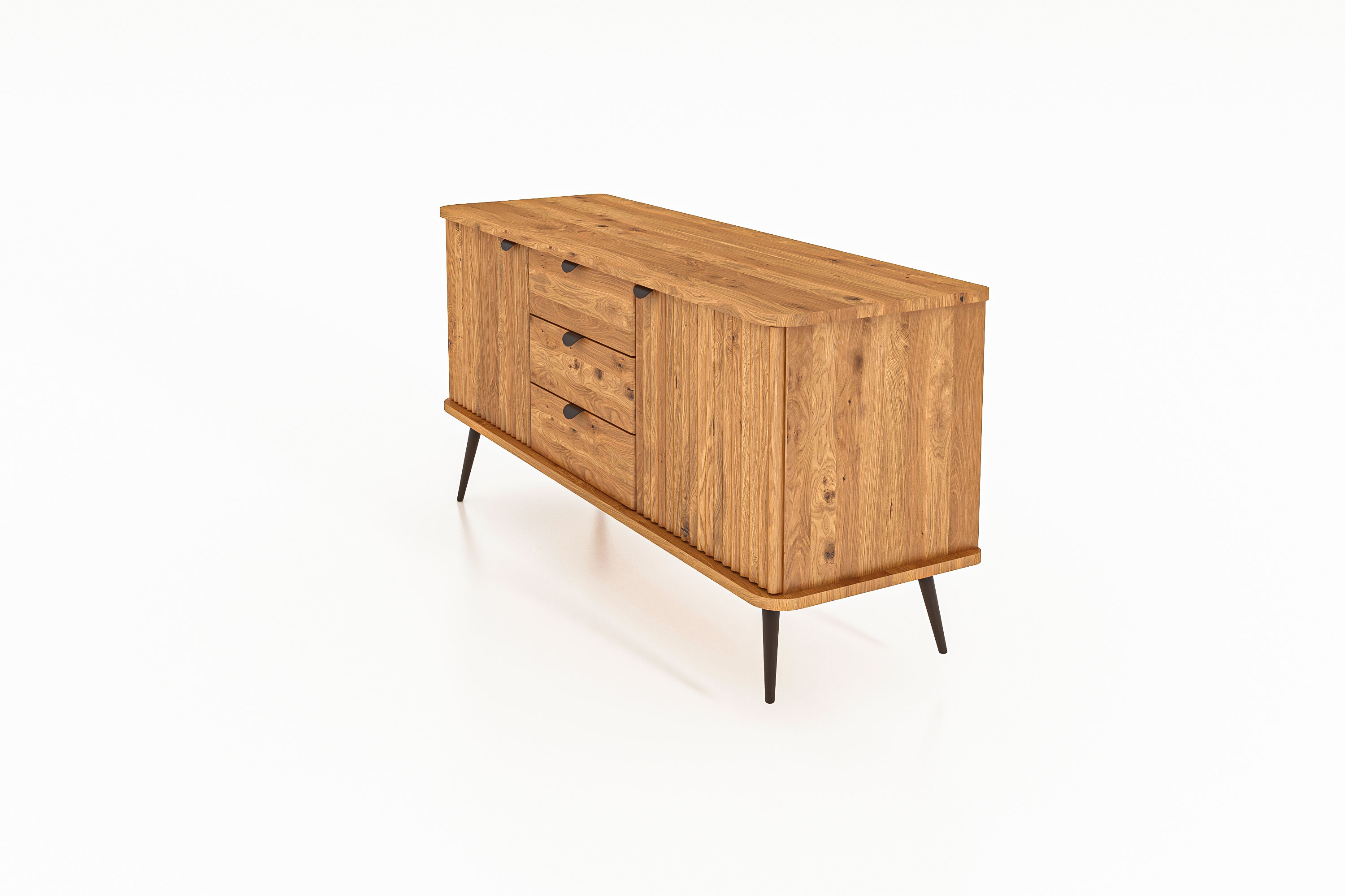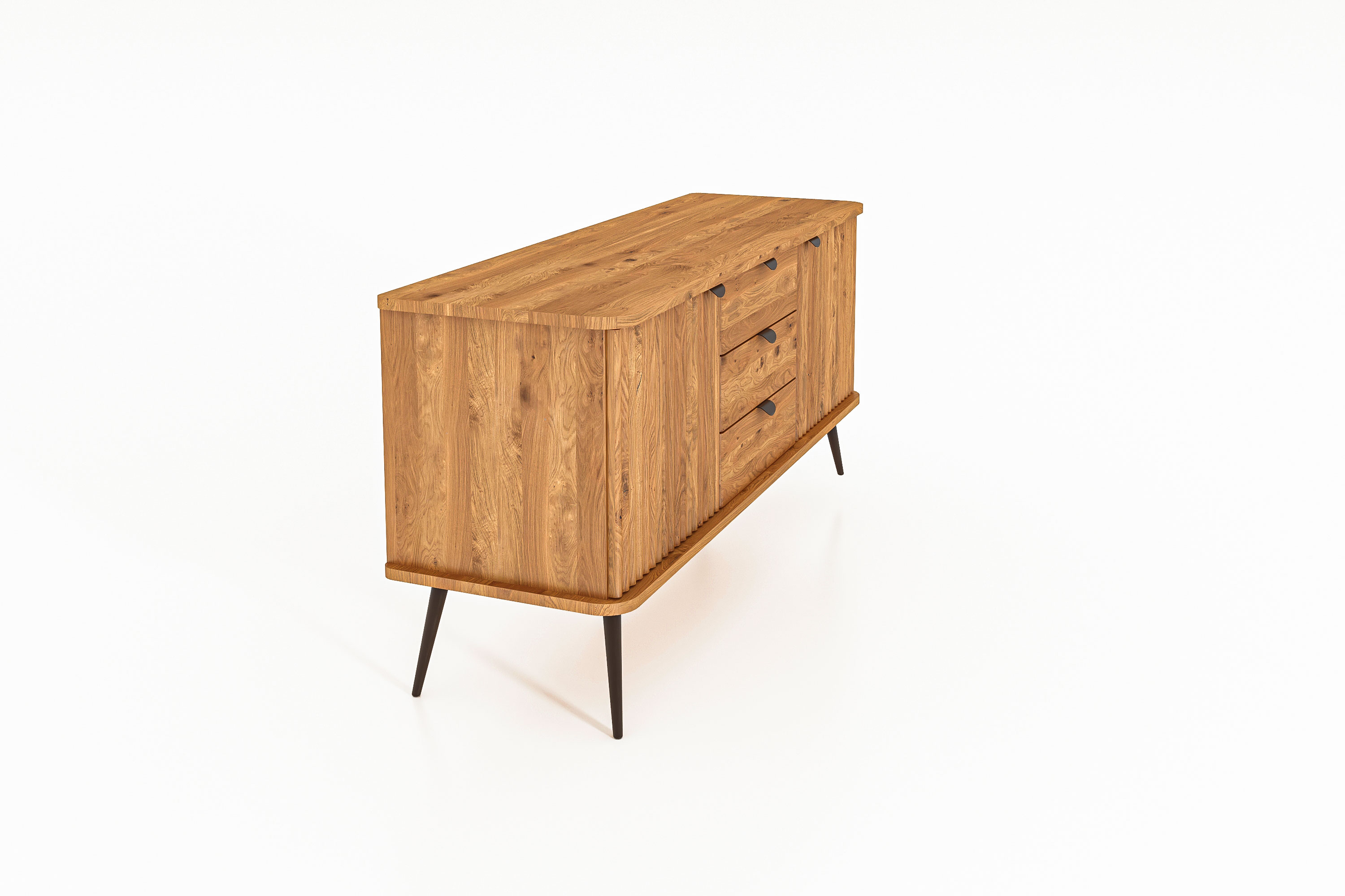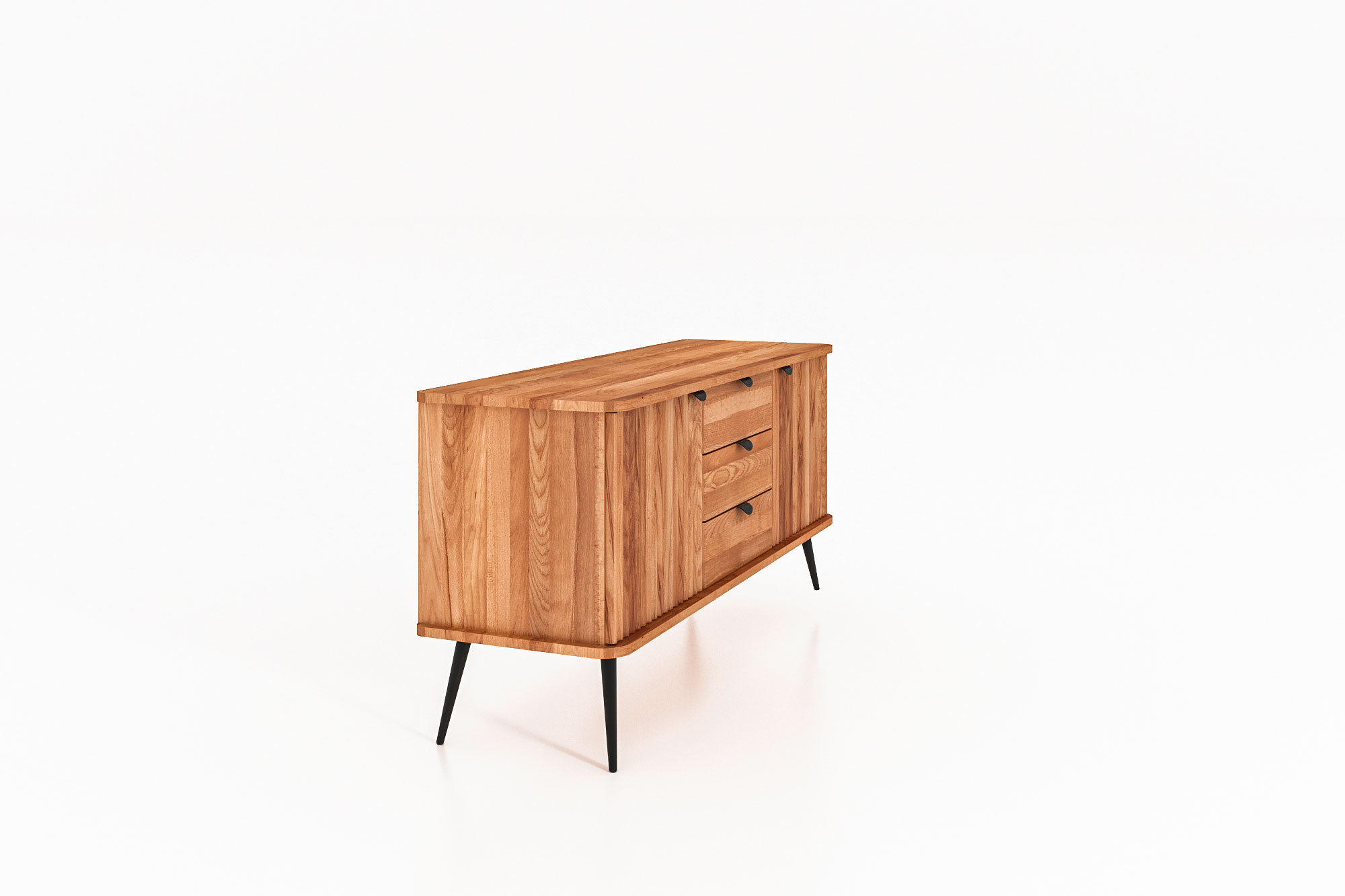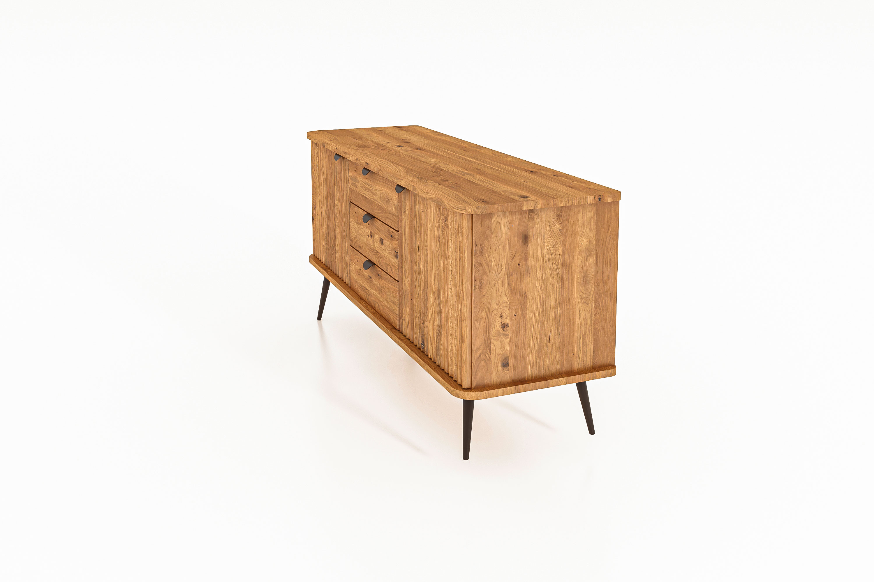 100% aus massivem Holz - durchgehende Lamellen , Lackierter Stahl Matt schwarz