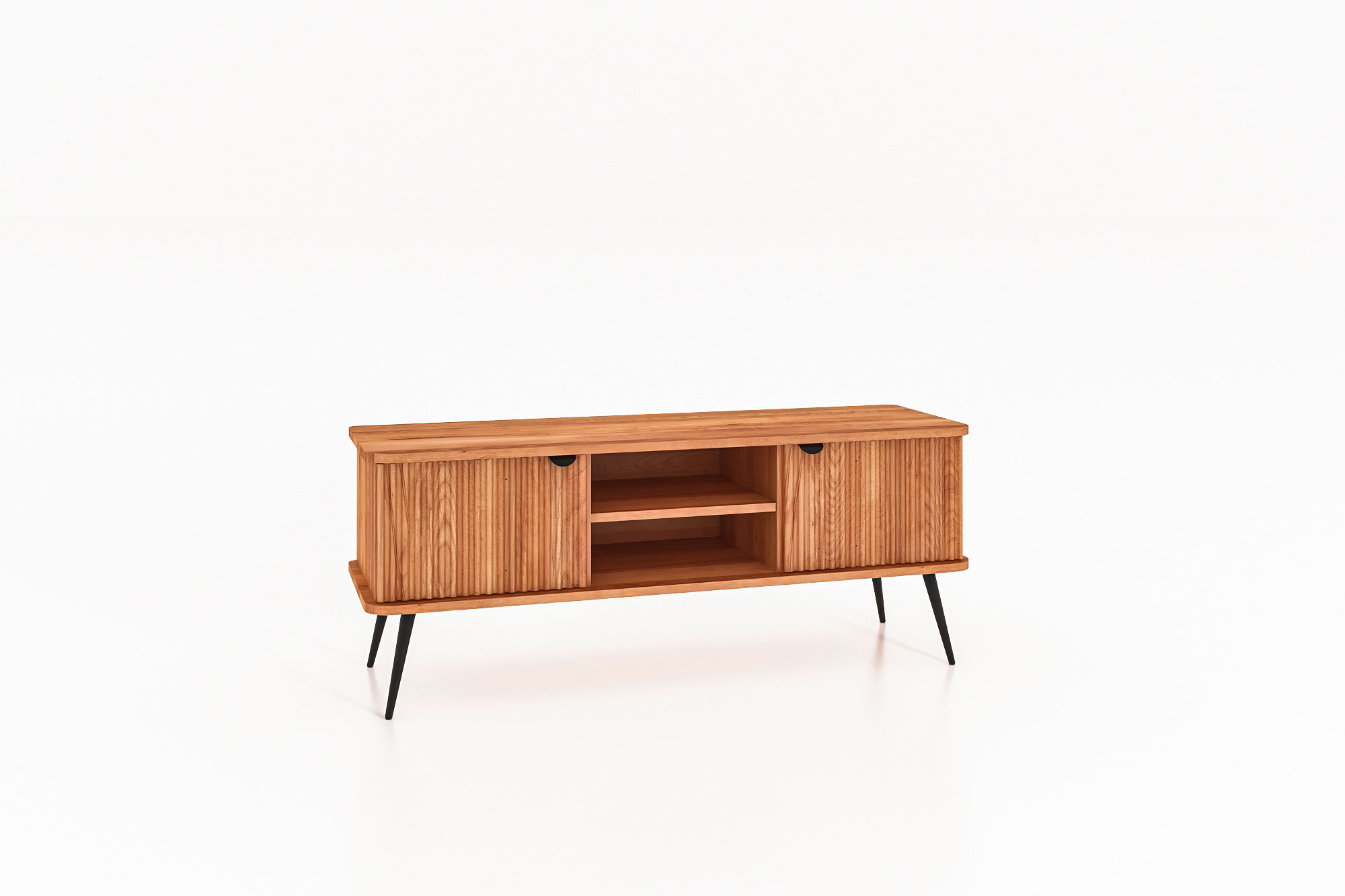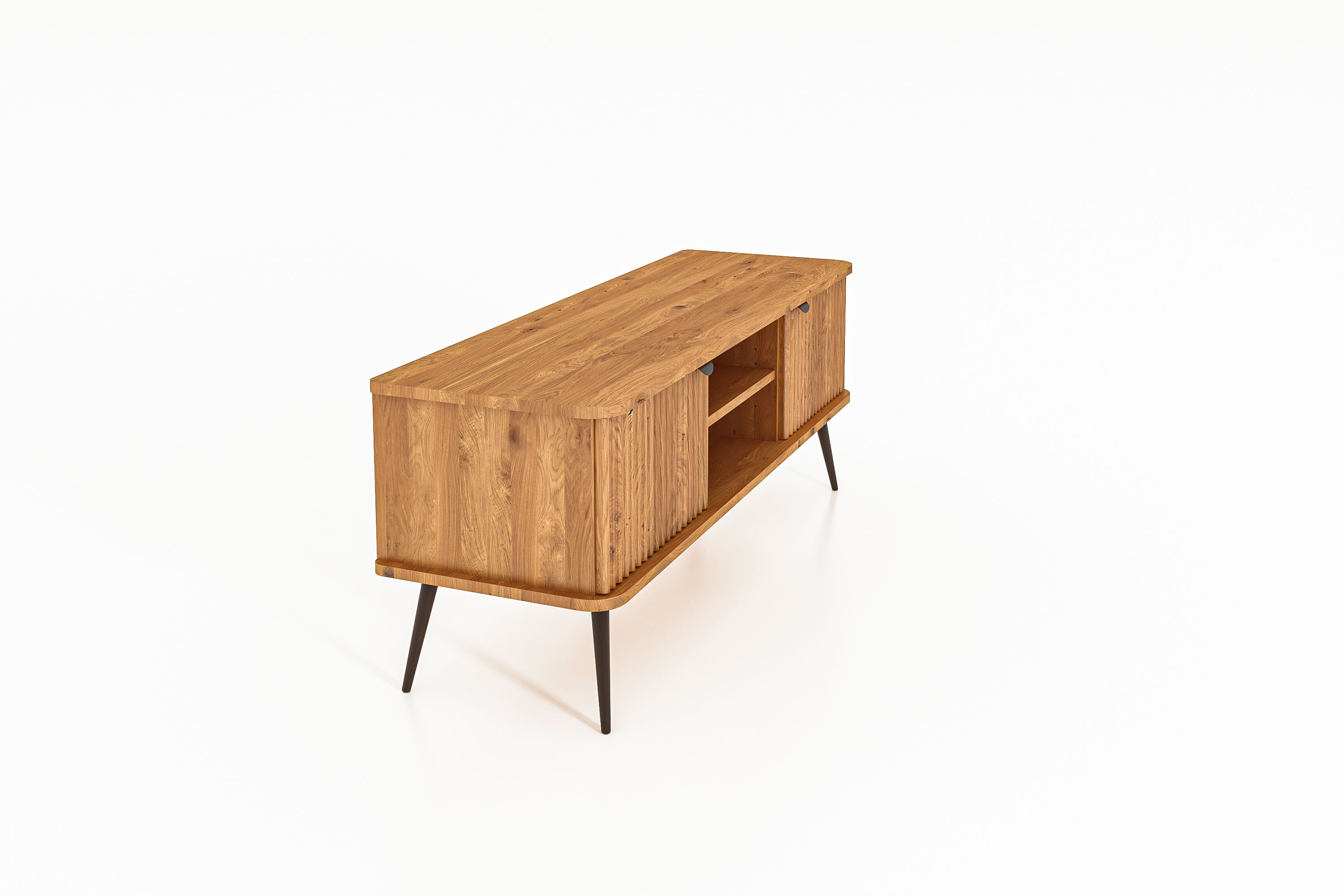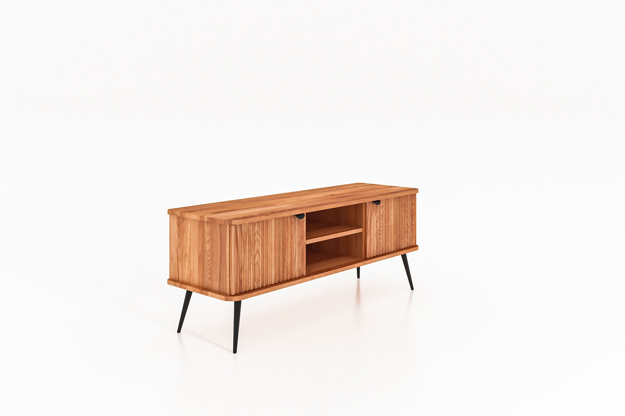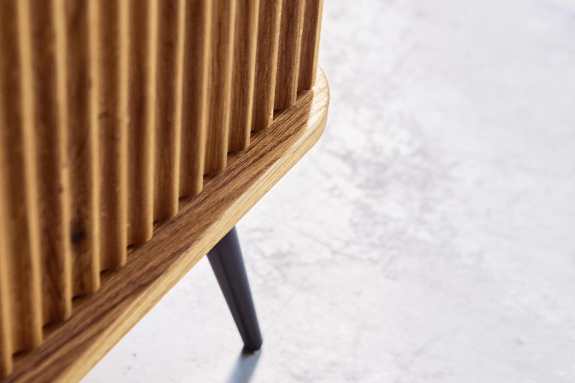100% aus massivem Holz - durchgehende Lamellen , Lackierter Stahl Matt schwarz
