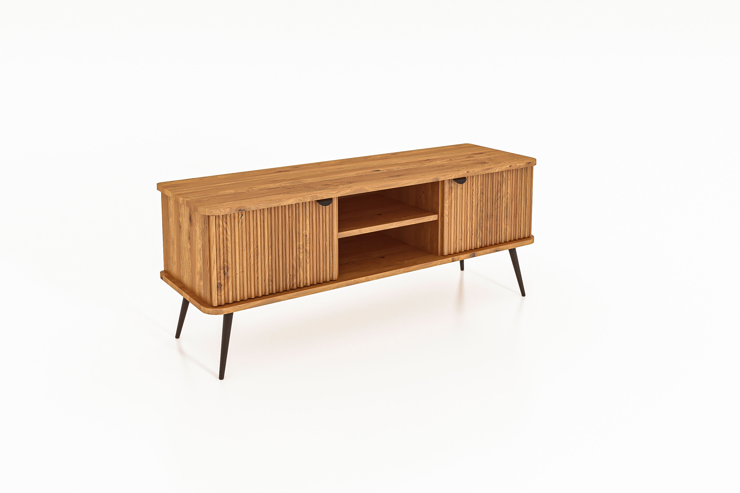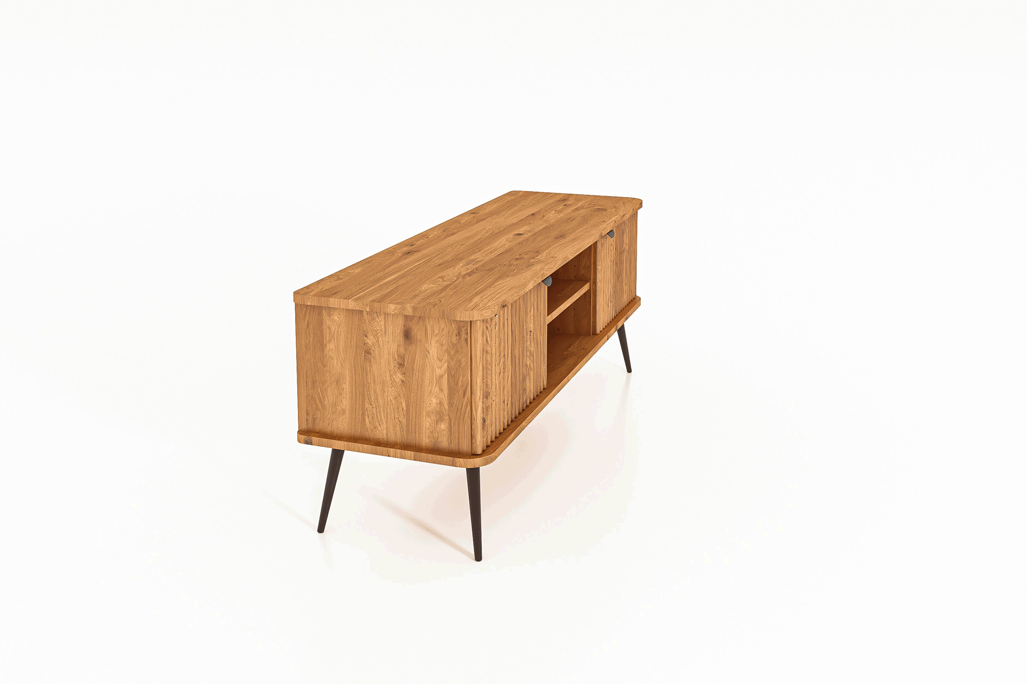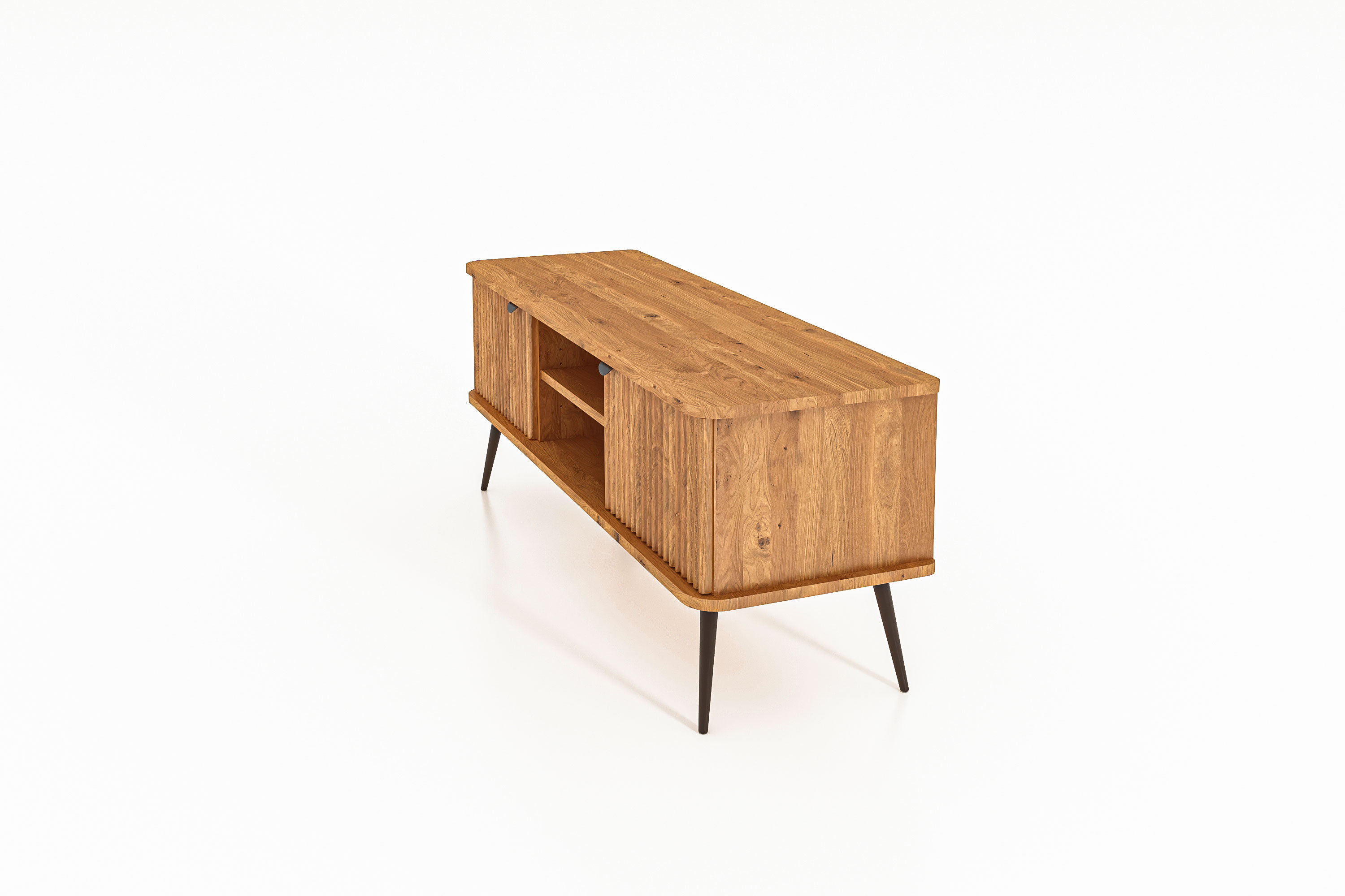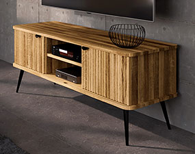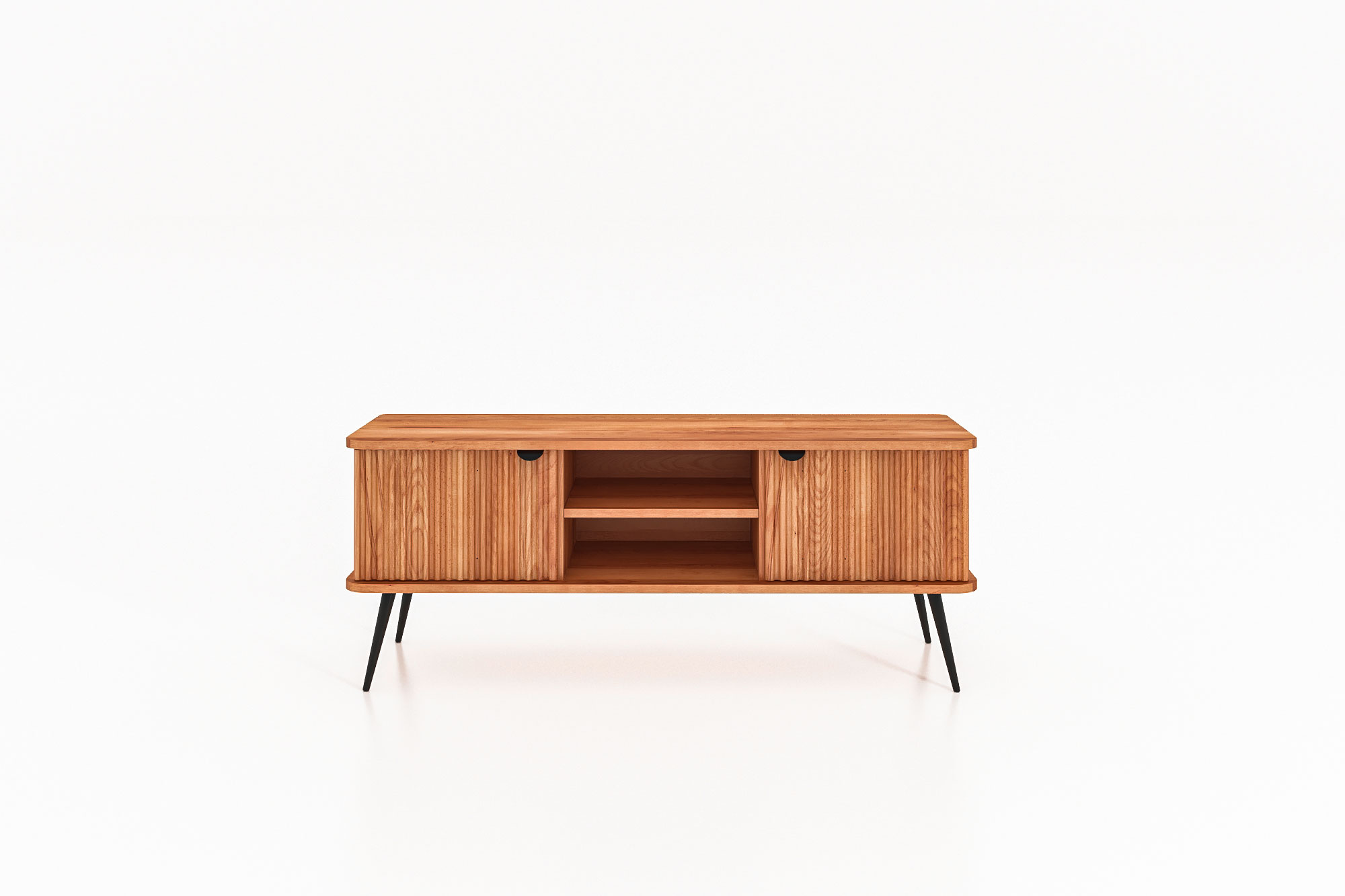 100% aus massivem Holz - durchgehende Lamellen , Lackierter Stahl Matt schwarz
