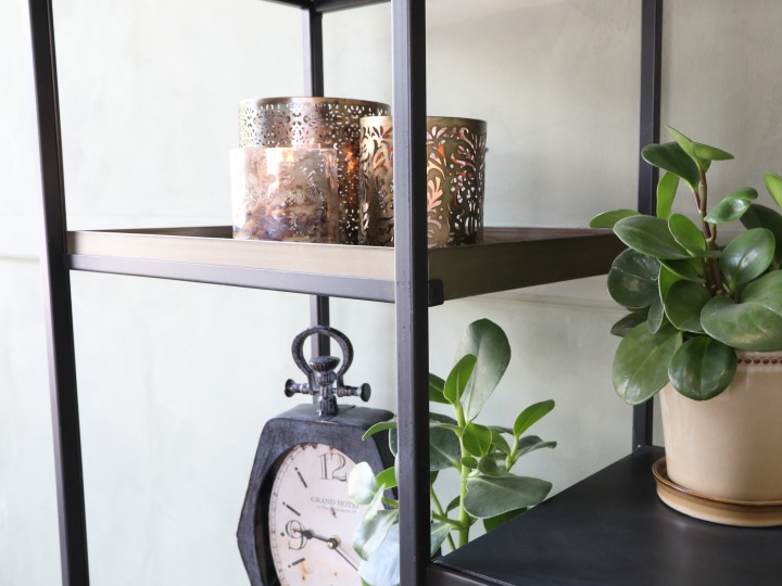 ...tolle Aufteilung! Metallregal mit Fächern & 2 messing Tabletts im angesagtem INDUSTRIAL-LOOK.
