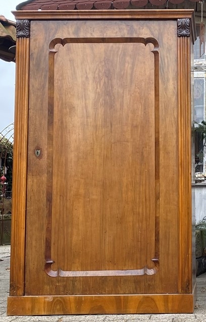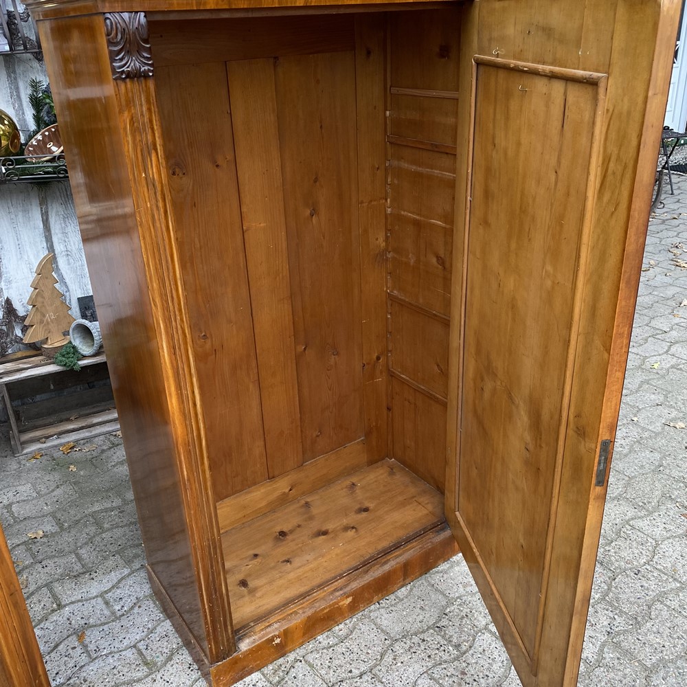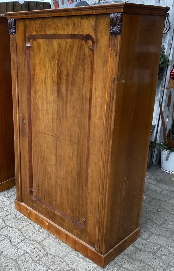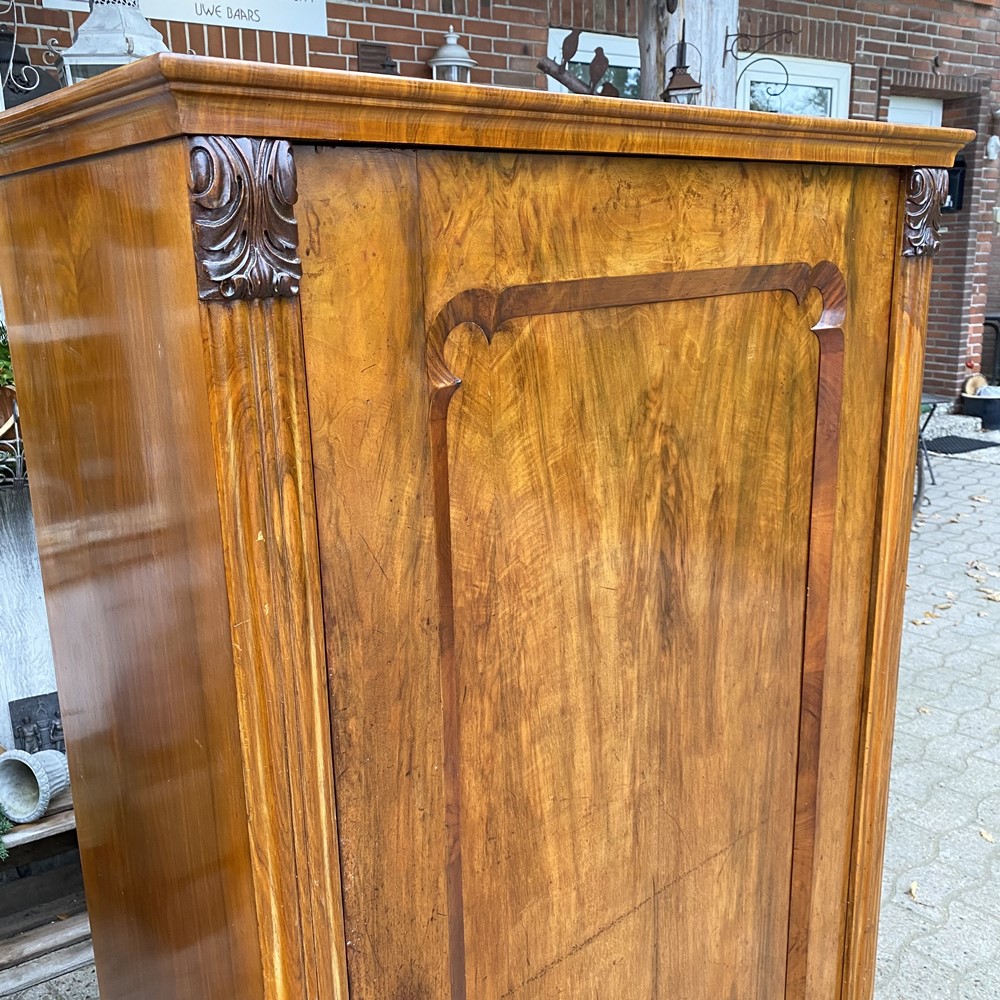 Wäscheschrank aus Wien / antik / Nussbaum. Dieser schöne Schrank stammt aus der Zeit um 1860. Auf der Rückseite befindet sich noch ein altes Schild aus der Zeit in Wien. Schlüssel und Einlegeböden fehlen. Der Allgemeinzustand ist gut.Falls es nicht Ihr eigenes "PROJEKT" zum aufarbeiten, überstreichen oder umgestalten werden sollte, wir bieten das schöne Stück erst einmal unrestauriert an. Auf Anfrage erstellen wir gern ein Angebot zu einer Restauration. Gebrauchsspuren, kleine Macken, Kratzer und Abplatzer sind alters bedingt vorhanden ( siehe Fotos).