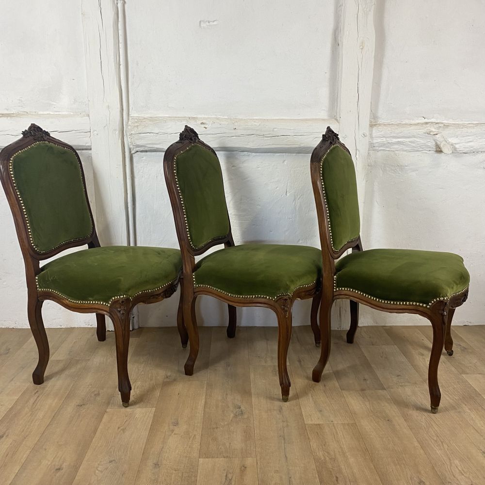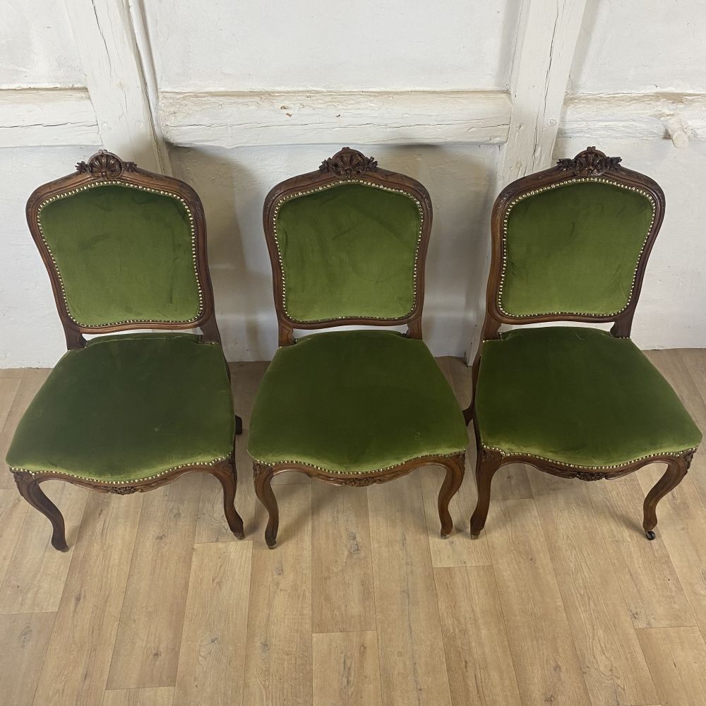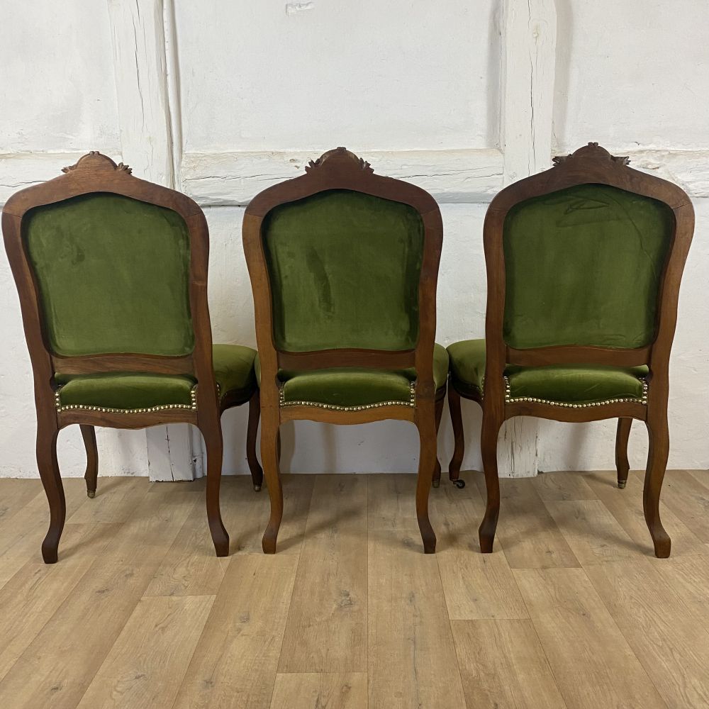 Produktinformationen "Satz mit 3 antiken Stühlen / massiv Nussbaum"