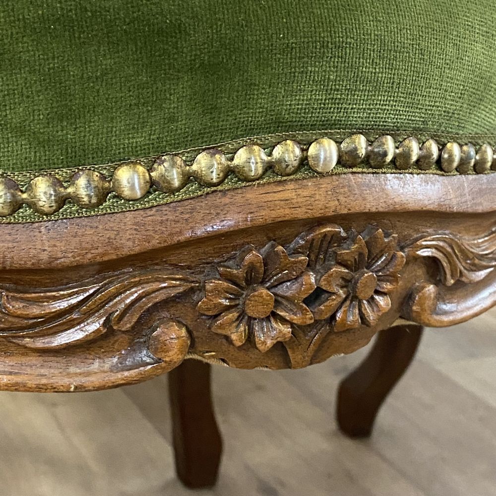 Salonstühle auf Rollen ...wunderschön! Satz mit 3 antiken Stühlen / massiv Nussbaum. Im großen und ganzen befinden sich die Stühle in einem sehr guten Zustand, hier und da sind kleine Abplatzer und abbrüche an den Holzzierteilen. Wir würden die Stühle so hinstellen! Die Fotos sprechen für sich.Falls es nicht Ihr eigenes "PROJEKT" zum aufarbeiten, überstreichen oder umgestalten werden sollte, wir bieten das schöne Stück erst einmal unrestauriert an. Auf Anfrage erstellen wir gern ein Angebot zu einer Restauration. Gebrauchsspuren, kleine Macken, Kratzer und Abplatzer sind alters bedingt vorhanden ( siehe Fotos). Vielleicht ist das auch mal ein tolles Geschenk für Ihre Liebsten!? Stöbern Sie noch ein wenig weiter hier bei uns auf WUNDERBAAReS.de... es gibt viel zu entdecken! Achtung! Falls Sie mehrere Artikel in Ihren Warenkorb gelegt haben und Ihnen die Versandkosten zu hoch erscheinen, melden Sie sich Bitte bei uns. Unserer Programm kann in einigen Fällen Artikel nicht zusammen fassen und berechnet dann zu hohe Versandkosten. Wir bitten um Ihr Verständnis.