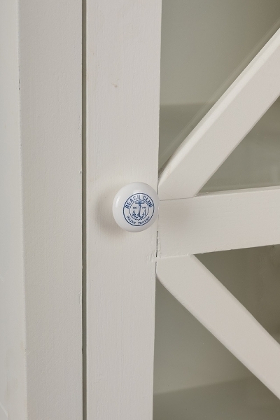 Durch die Kombination aus weißem Holz mit dunkelblauen Schriftzügen und maritimen Symbolen entsteht der Beachhouse Look.
