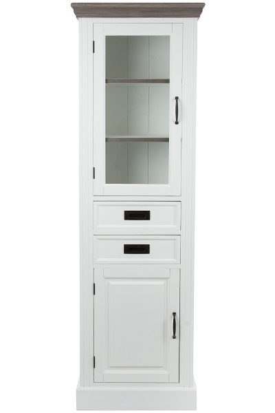 - Vitrine mit Holz- und Glastür und 2 Schubladen