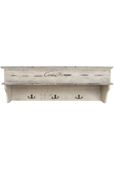 Die Wandablage hat einen hübschen Schriftzug und 3 praktische Doppelhaken.