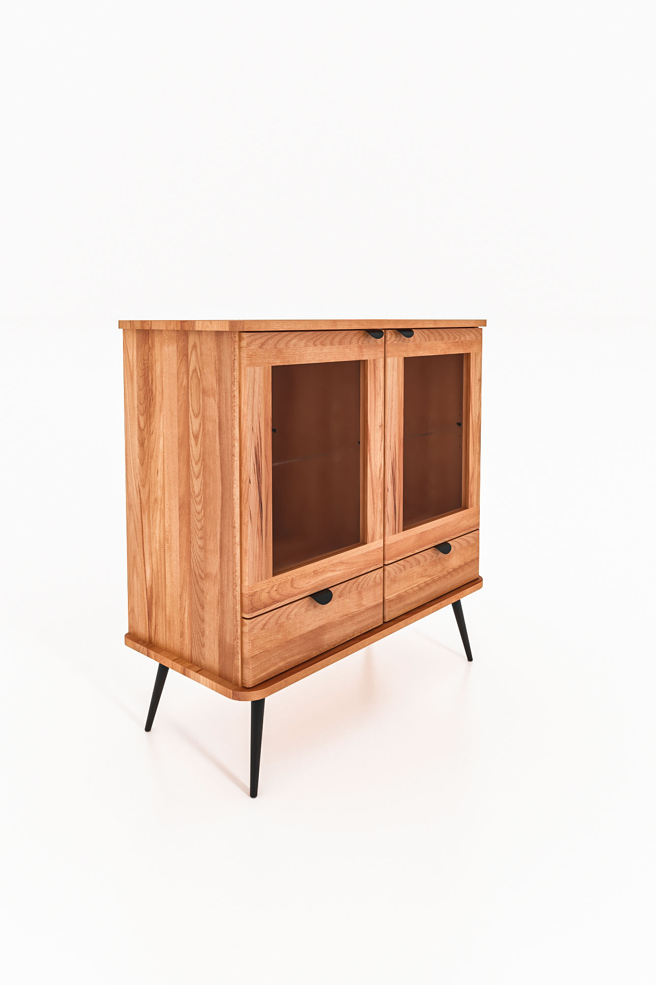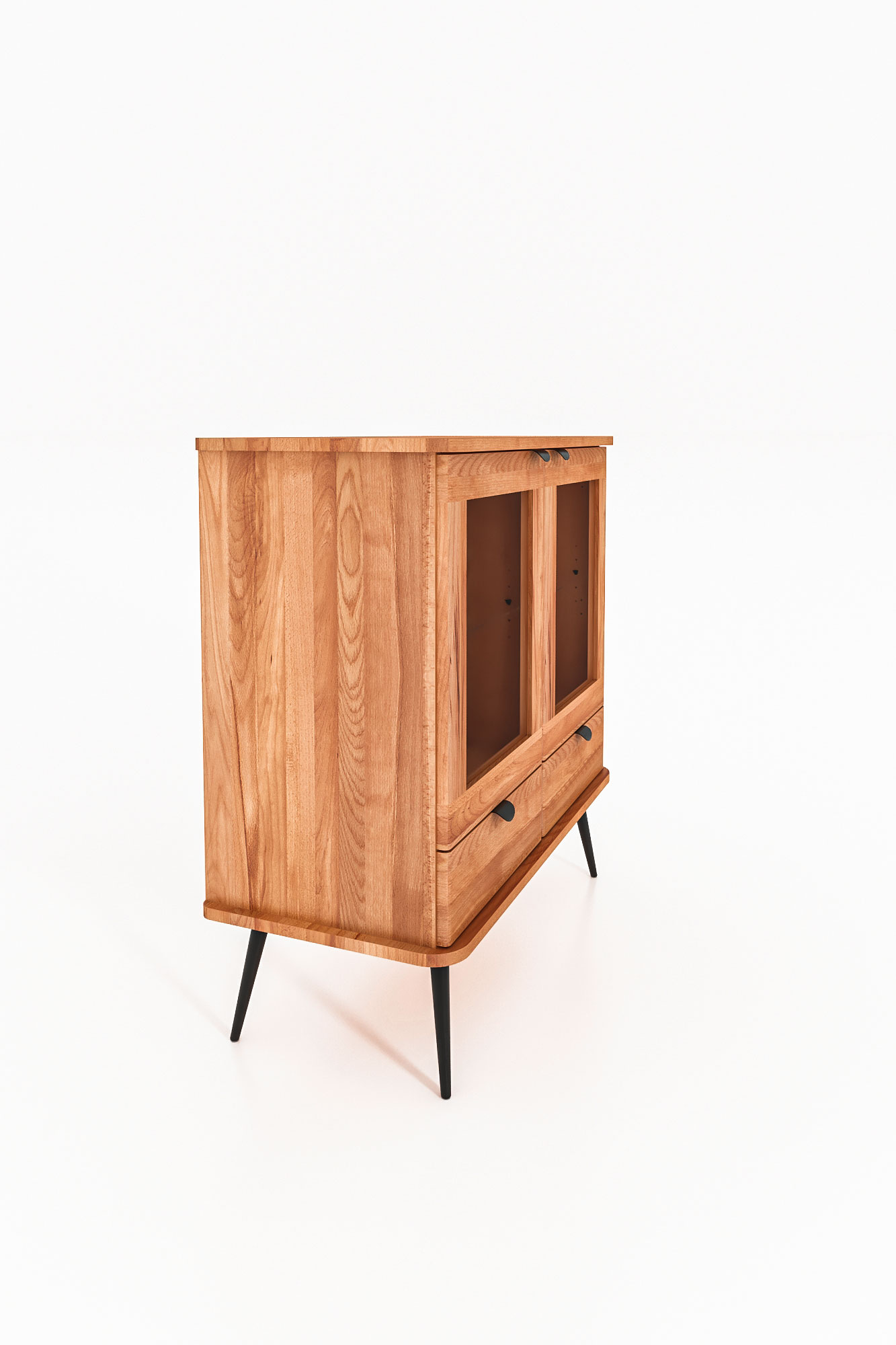 100% aus massivem Holz - durchgehende Lamellen , Lackierter Stahl Matt schwarz