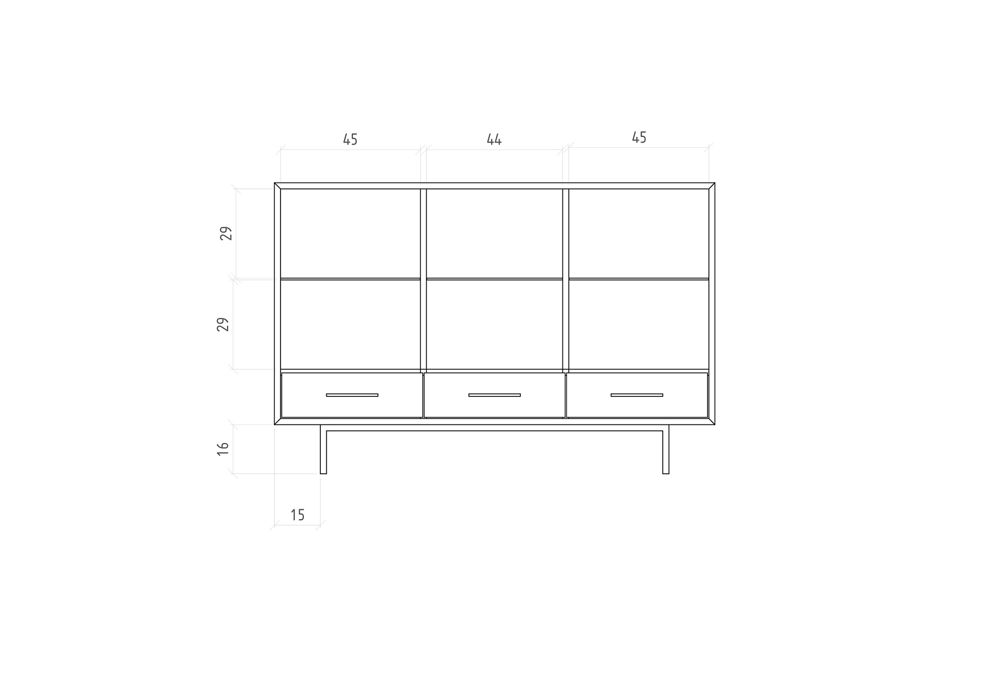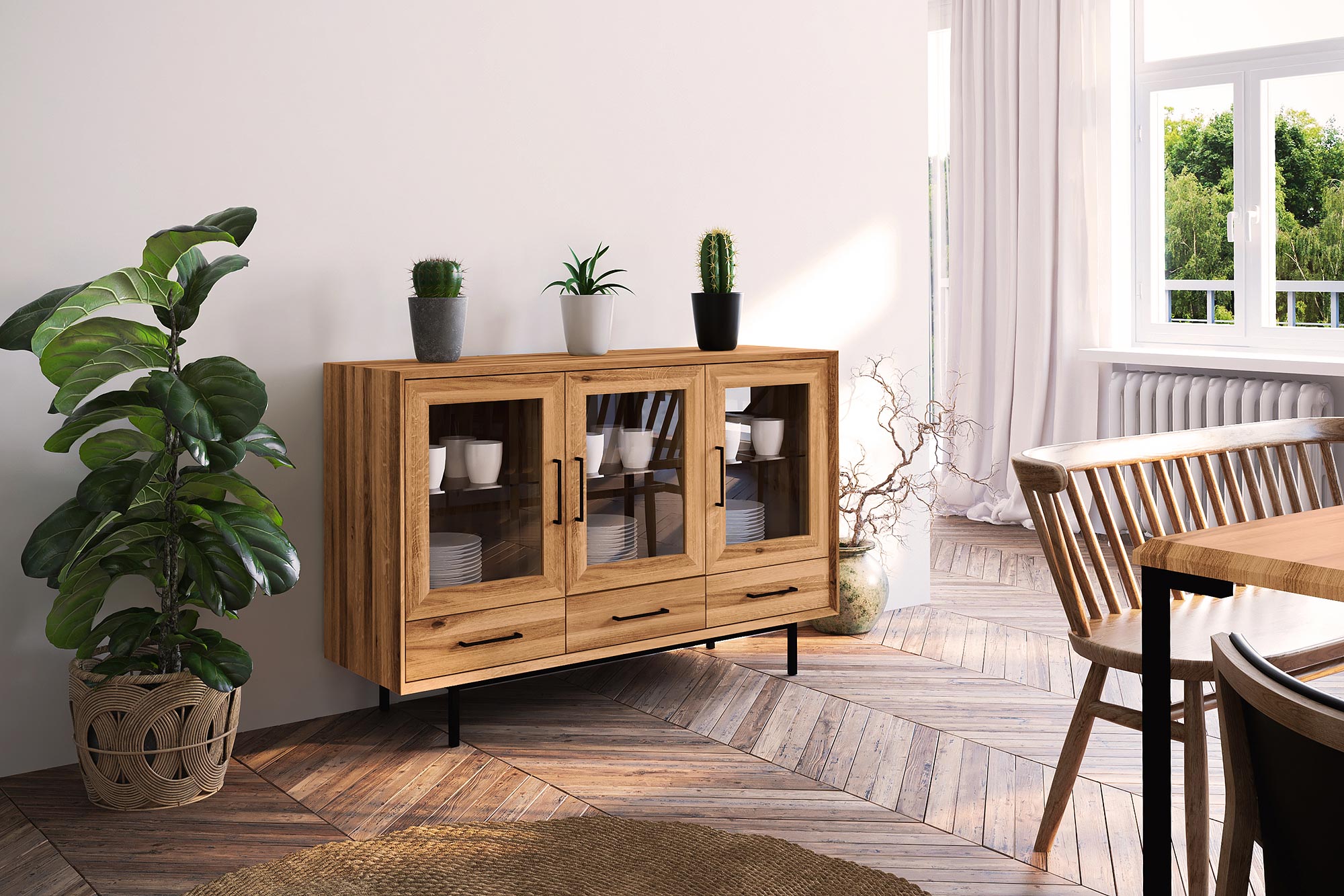 Vitrinenschrank - Anrichte 3 Türen & 3 Schubladen / Abies 2749