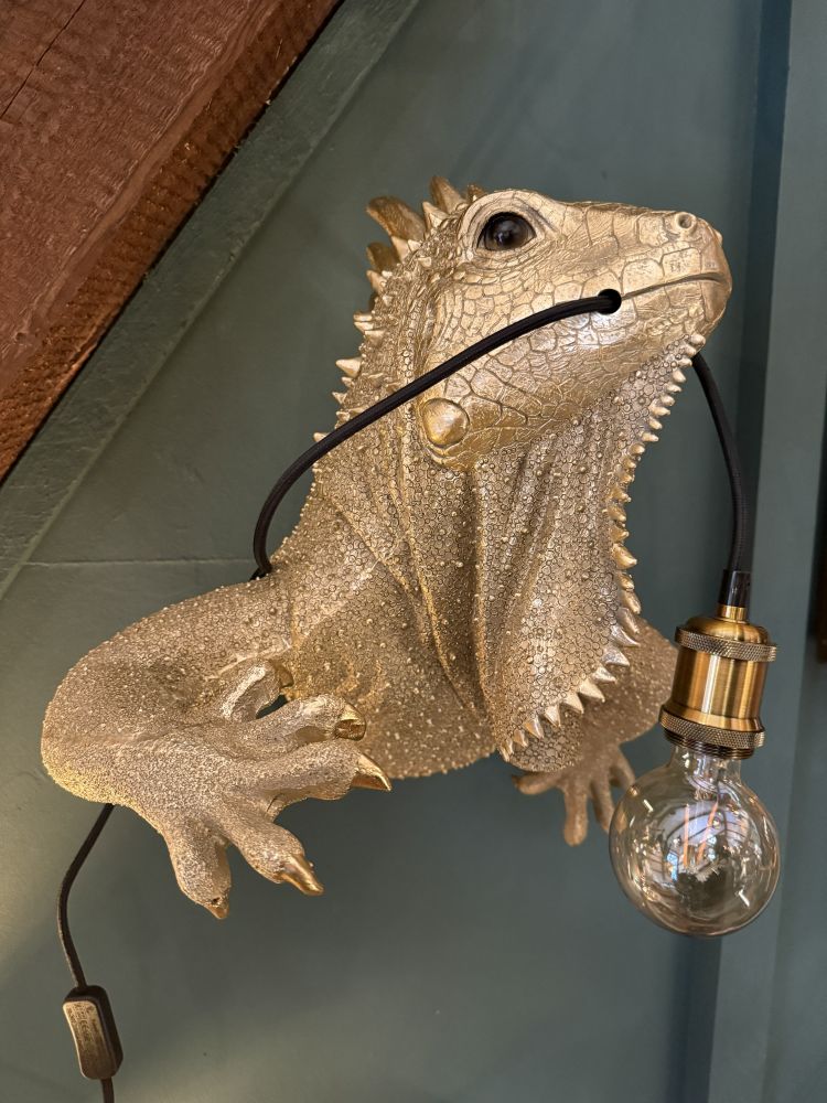 Wandlampe „Golden Iguana“ – Chamäleon Designleuchte XL