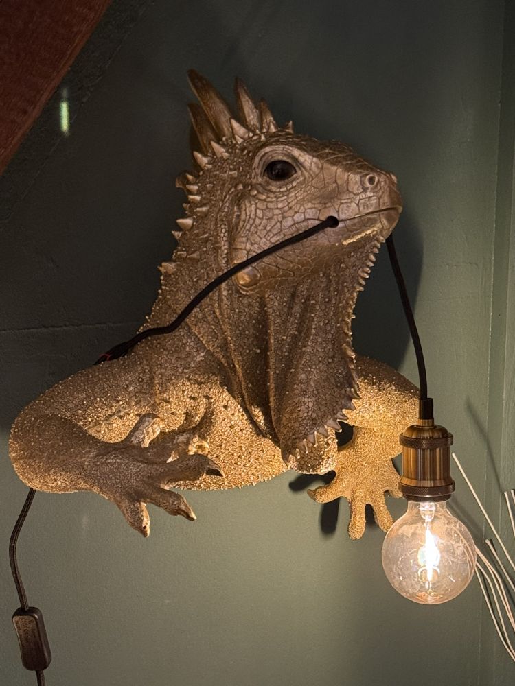 Diese außergewöhnliche Chamäleon-Wandlampe ist ein echtes Statement-Piece für moderne und stilbewusste Wohnräume. Mit ihrer beeindruckenden Größe und detailreichen Oberflächenstruktur wirkt sie wie ein Kunstobjekt – kombiniert mit funktionalem Licht.